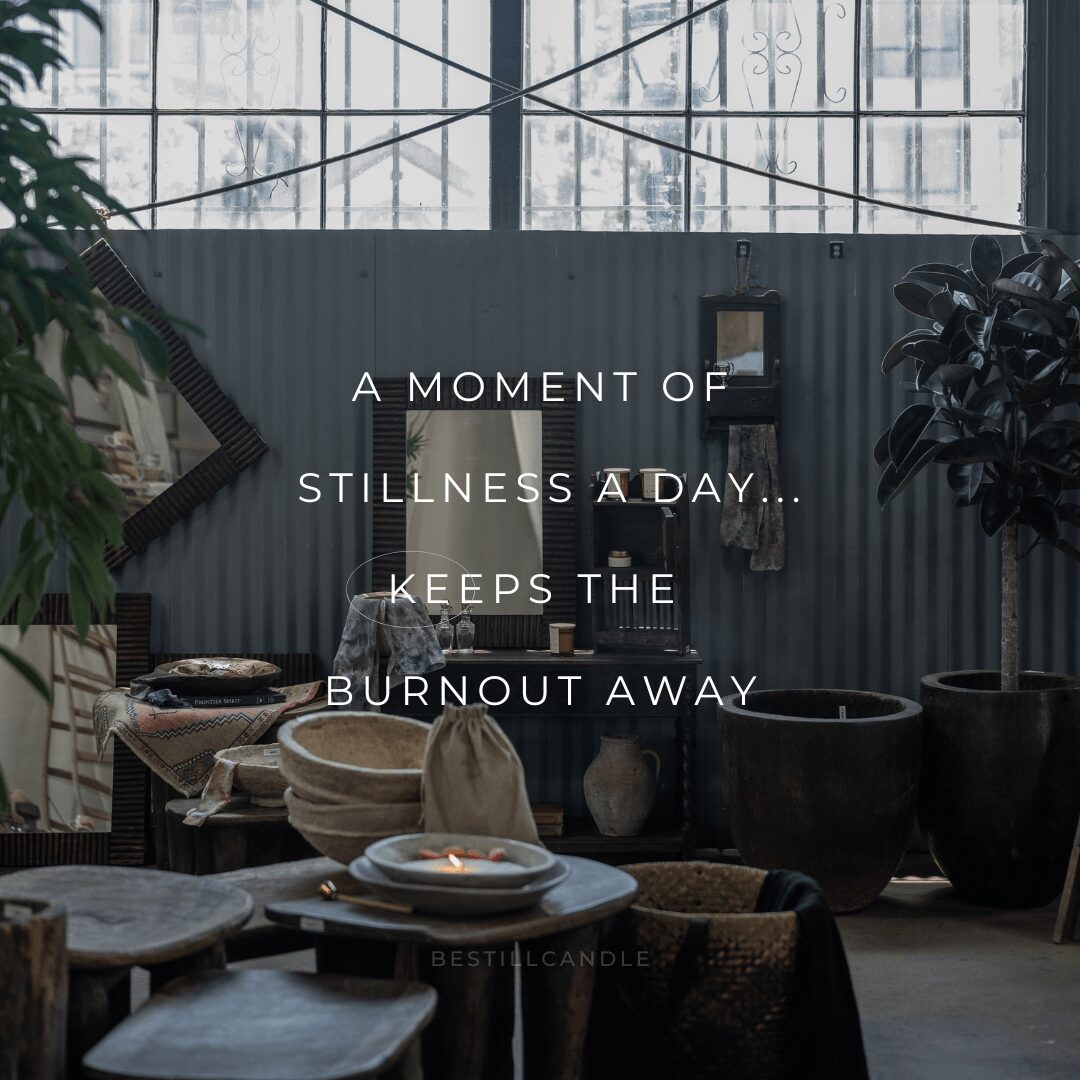 Here’s a little reminder from Be Still Candle: A moment of stillness a day, keeps the burnout away.