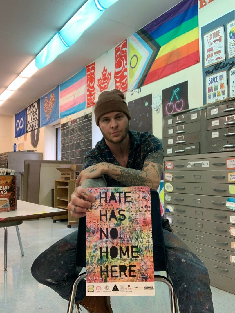 Hill Werth is an internationally recognized trans non-binary mixed media artist, activist, and educator based in Kingston, Ontario. Born and raised in the U.S., Hill has been an artist and athlete throughout their life, earning a full scholarship to UCLA where they graduated in 2009 with a degree in history and art history. A former All-American track and field athlete and Olympic hopeful in bobsled. They moved to Kingston in 2021 to marry their wife, becoming a permanent resident of Canada in 2022. Hill completed teachers college at Queens University, and is an art teacher in the Upper Canada District School Board. Hill’s artistic practice is rooted in layering, balance, visual rhythm and explores visibility, awareness, and representation, drawing from personal experience. Active in Kingston’s art and education community and beyond, Hill continues to advocate for inclusion and creative empowerment through art.