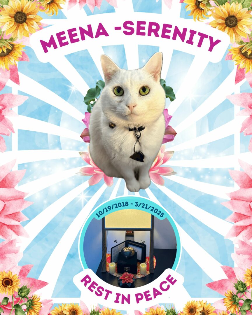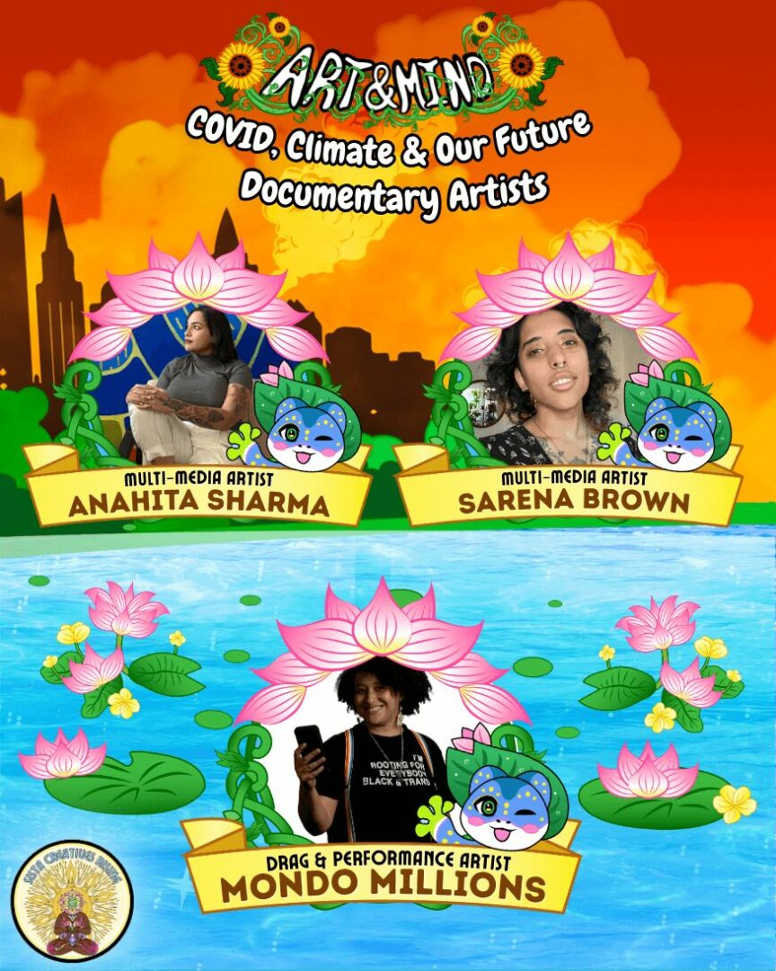 This year, we launched “Art & Mind 2025: COVID, Climate & Our Future,” our third “Art & Mind” event. We began working on it in August 2024, with the show happening in September of this year. We almost gave up because in November of last year, my Mom started preventative treatment for smoldering myeloma, which is a precursor to the blood cancer multiple myeloma. At the same time, my cat Meena was very sick. Meena had been my cat for five years, and we had the same birthday, October 19th. She got very ill from a paw condition called pillow paws. Both Meena and my Mom started immunosuppressants at the same time, and as my Mom improved, Meena declined, and ultimately, it was a really horrible experience ending in her passing away in March of this year. She died in the middle of us trying to develop this event. We always said that Meena was our third co-founder – our “Feel Good Ambassador,” because we launched Sista Creatives Rising in 2023, but we had our first “Art & Mind” in 2021, so she was there for all of it. She was there when my Mom had lymphoma and when I had several health issues happening, always comforting us while she was also chronically ill, so we wanted to give up when she passed. We dedicated this show to her.