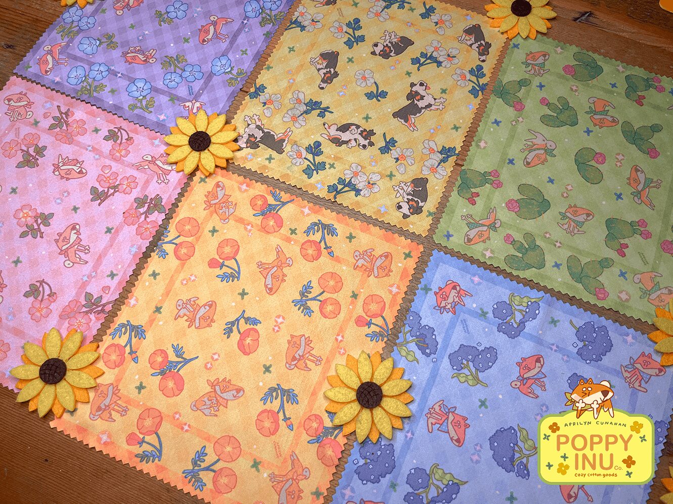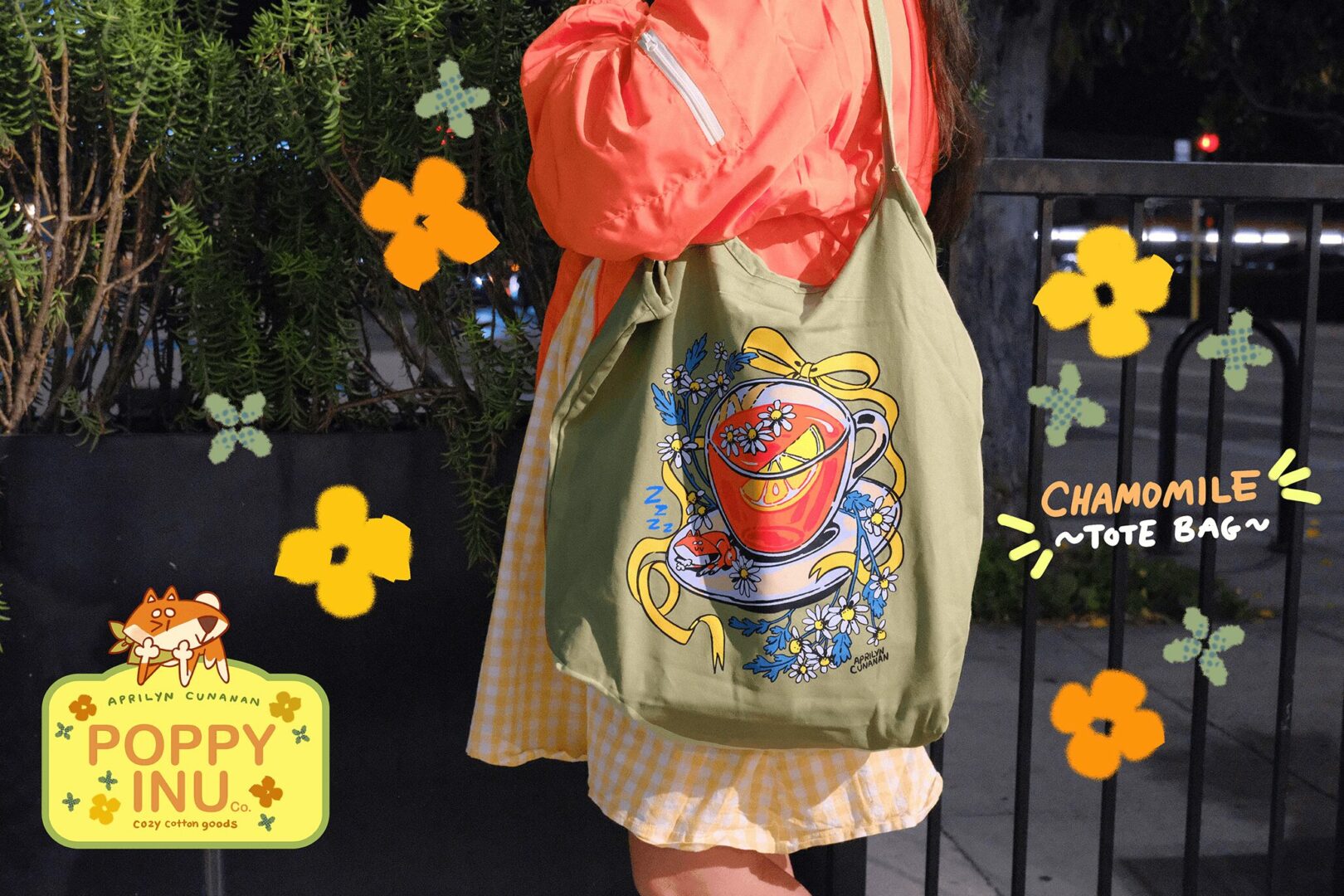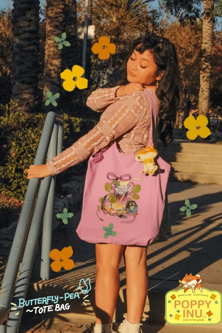 Aprilyn Cunanan is an illustrator based in Burbank, California. She moonlights as professional background artist in TV, feature and indie animation and has over 8+ years of experience in her field. She’s pivoted recently to creating her own artisan cozy cotton brand called “Poppy Inu Co.” Her illustrations celebrate the beauty and color that can be found in the desert of Native California plant life in a cottage-core, Sanrio-esque style with 100% cotton goods such as plush, tea towels, cropped teas, bandanas and tote bags. Designed and locally pressed and oftentimes hand-made by herself. Aprilyn offers her works in prints in postcard and poster sizes as well as stationary items made by hand!