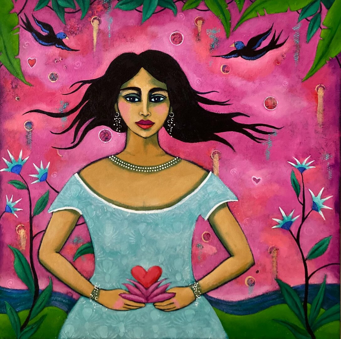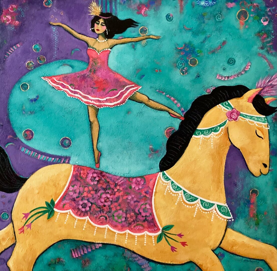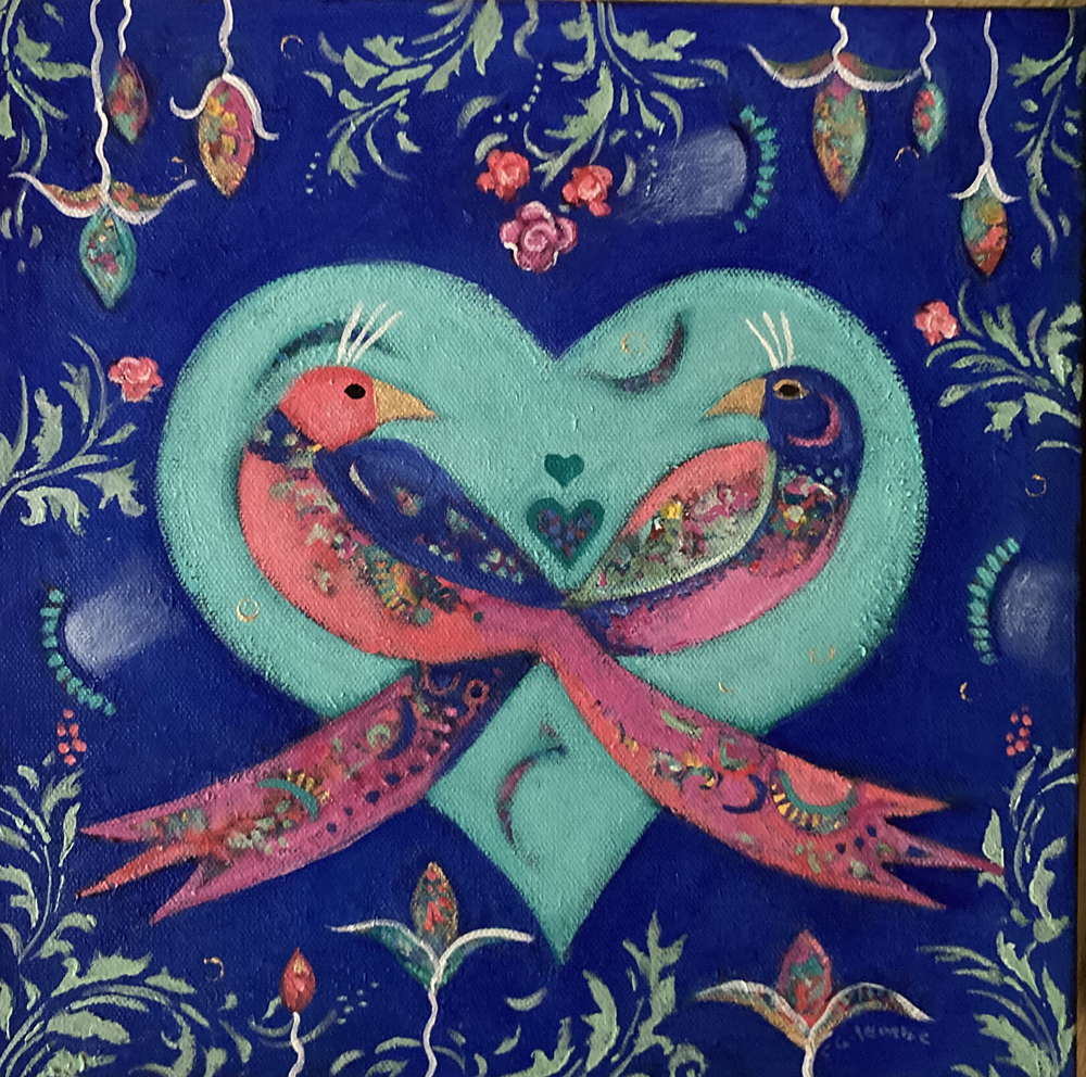 I’m an acrylic painter and teacher of acrylic painting. I’m a hands on artist who loves the feel of working with materials and the creative process. My imagery is stylized and figurative and reflects how I perceive in the world and how I’m influenced by my life and the world around me. I’ve been an artist all my life and have been a printmaker and children’s book illustrator and author. Teaching has always been a part of what I do because I enjoy sharing what I love with others and helping them to fall in love with the creative process