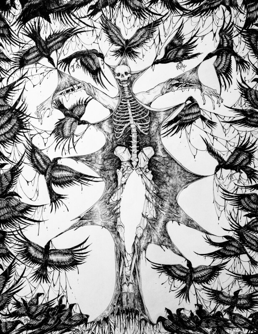 Hi! I’m Ludo, a lesbian artist born and raised in Tucson. I do traditional inkwork of all things macabre and grotesque. I love drawing monsters, the human form and religious themes. I’ve struggled with mental illness, trauma and physical disability most of my life and I draw my art from a deeply personal place that I’ve used to cope since I was a child. I think horror is a powerful medium for all kinds of expression and emotion, a vessel to get fears and pain out while coming to peace with things. I hope my art resonates with others in their own way.