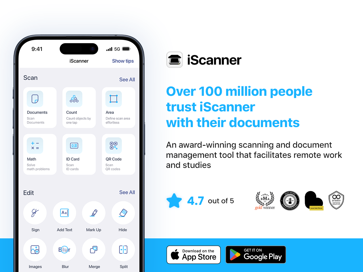 iScanner is an AI-powered document management and scanning tool created to help people get clean, professional-looking scans wherever they are. The app lets users scan everything from a handwritten note to multipage documents, convert them into any popular format, edit, e-sign, and even turn images into fully editable, searchable text. All you need is your smartphone.