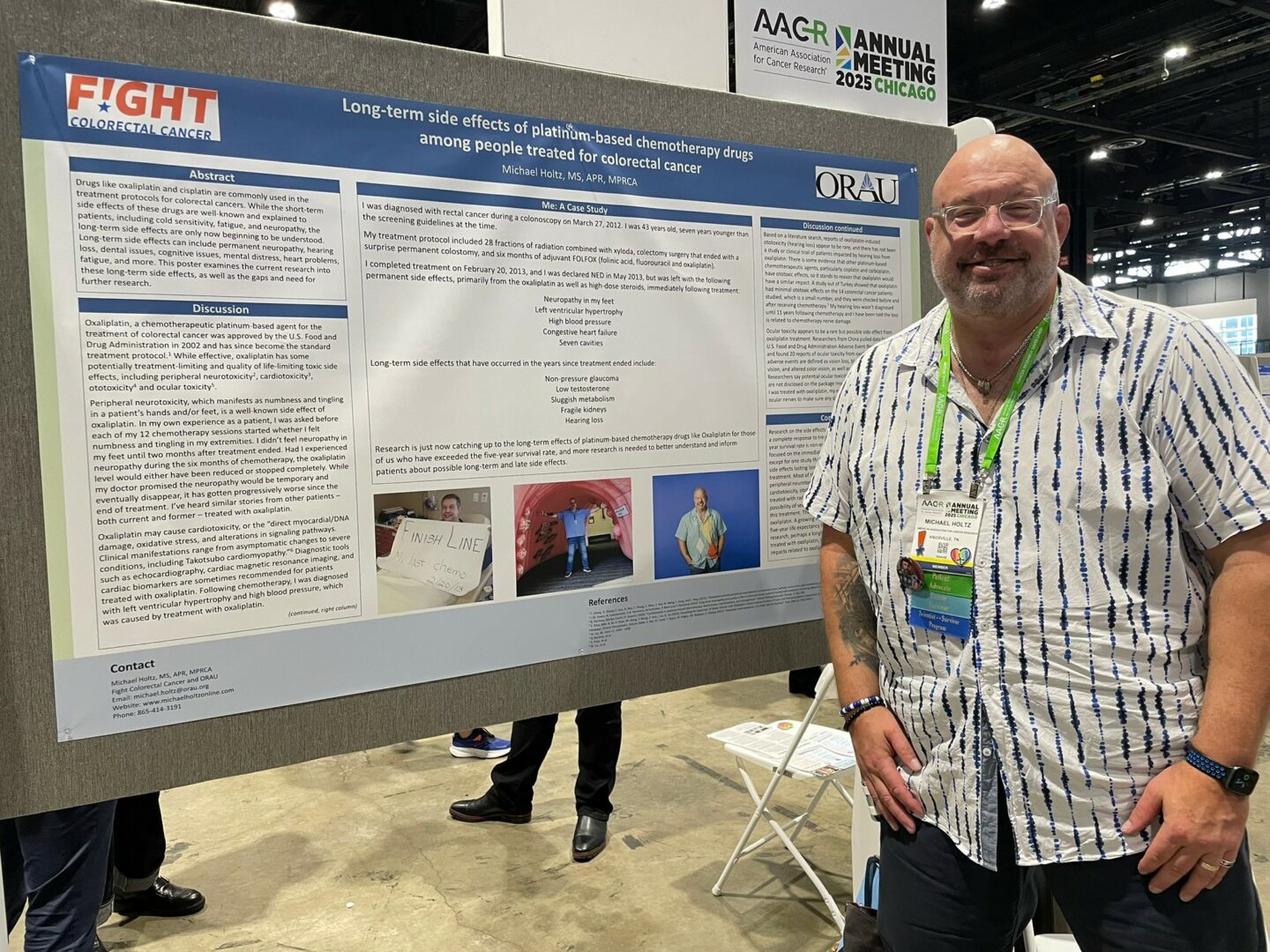My name is Michael Holtz. I am a 13-year survivor of stage-3b rectal cancer and a passionate cancer activist. I am chairman of the board of directors for Man Up to Cancer, an organization dedicated to helping men facing cancer social and emotional support through connection to other men. I am also a volunteer for Fight Colorectal Cancer, where I am a regional policy advocacy leader and a research advocate. For my day job, I am senior communications and marketing specialist for ORAU, a federal government contractor.