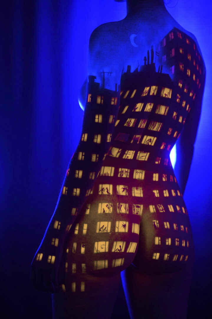 My name is Paul Roustan. I’ve been a boady painter for over twenty years. That is, I paint on people and then I photograph them. I have a Youtube channel that is relatively successful, and a patreon that pays the bills. I struggle every day trying to keep that going while shielding myself from censorship and projections of nudity equating to sex. Outside of that, for the last five years I’ve been wandering the metaverse, learning the ways to adapt my work into virtual venues. I’ve created a large variety of avatars, virtual wearables, and 3D venues that people could rock and explore.