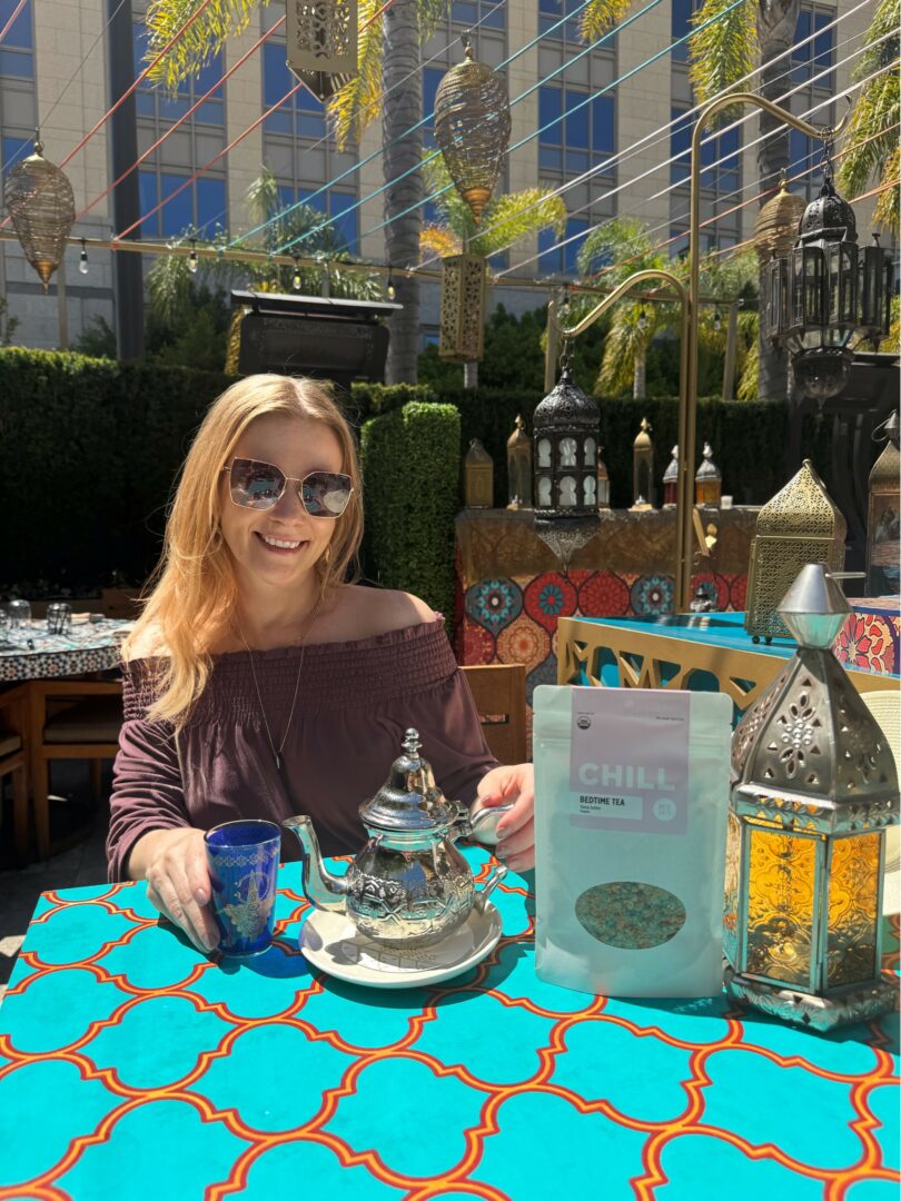 Lifestyle photo with MY24/7 Bedtime tea, organic: Trisha Leeper