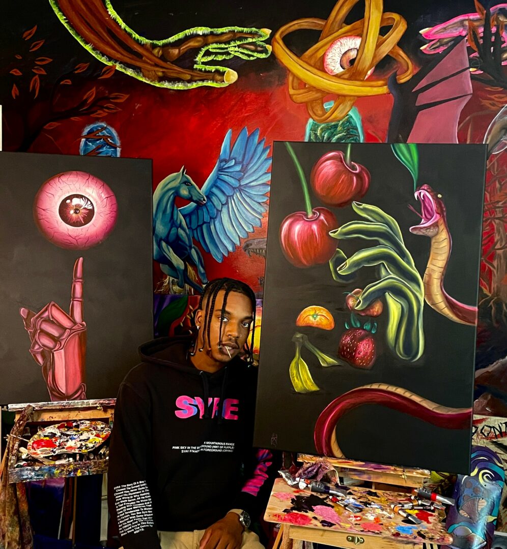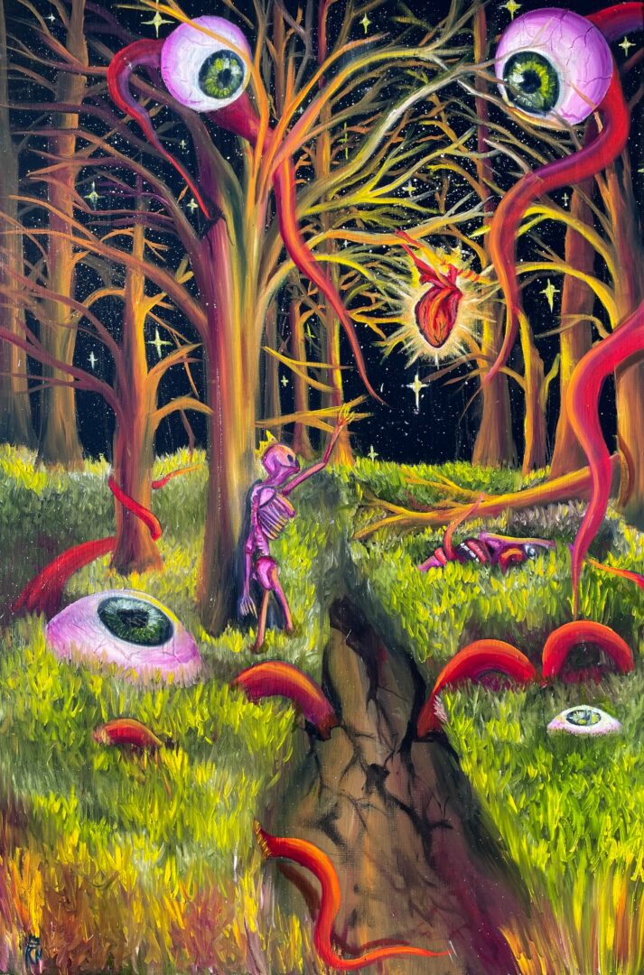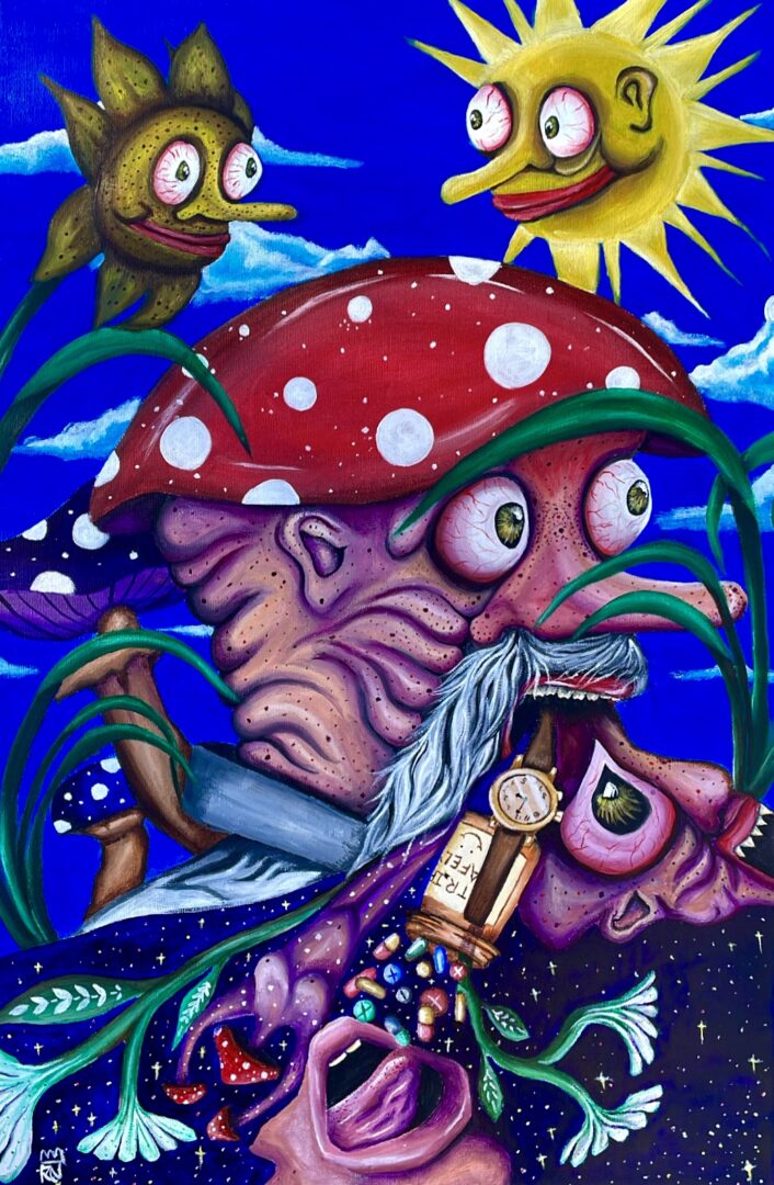My name is Richard, but I usually go by Rich. I like to call myself a creative with a focus on fine art, such as painting, drawing, and more. If I were to explain my work in one sentence to a new person, I would say; “I create outlandish surrealist paintings and creations, to emphasize dreaming and imagination.” My use of colors, unique compositions, and familiar themes is something that really brings a spirit of individuality and freshness into the contemporary art scene, if you were to ask me my opinion. Recently I’ve been lucky enough to have a creative showcase with several of my best friends, and show my art to new crowds in the Raleigh – Durham area. Currently, I am working on a new collection of surrealist takes on popular creatures, plants, animals, and ideas. While it’s still very early in the works, I can assure, this will be some of my most polished displays of artistry and creativity to date.