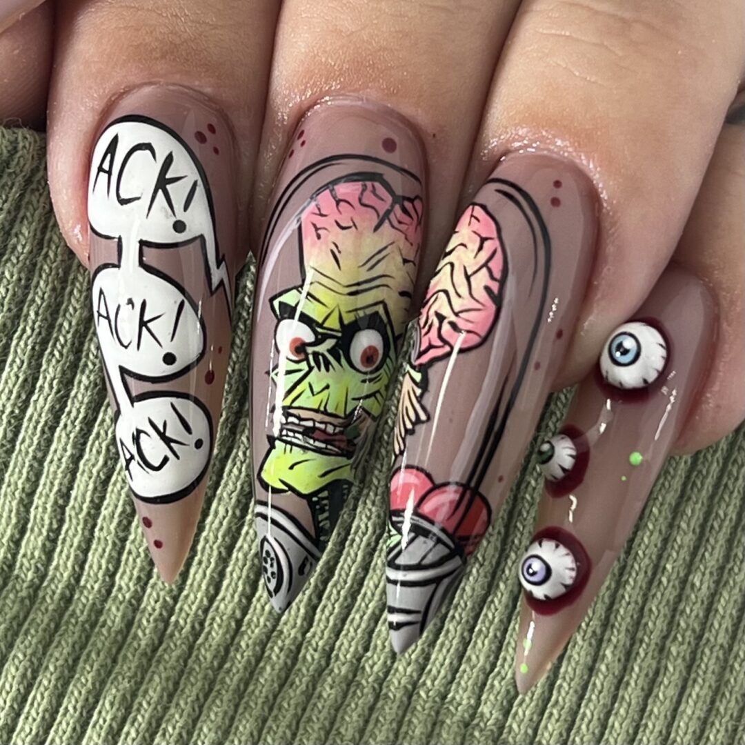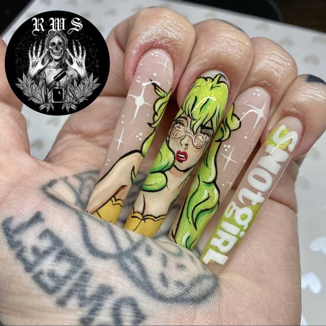My name is Syd. I am a nail artist of 10 years and a soon to be tattoo artist. My main focus when it comes to nail art (and now tattoos) is illustrative work. I really love to get as crazy and detailed as possible on people’s nails. Now that I am getting into tattooing, I get most excited for anything I get to use a 9 or 11 liner for, I like it BOLD😎