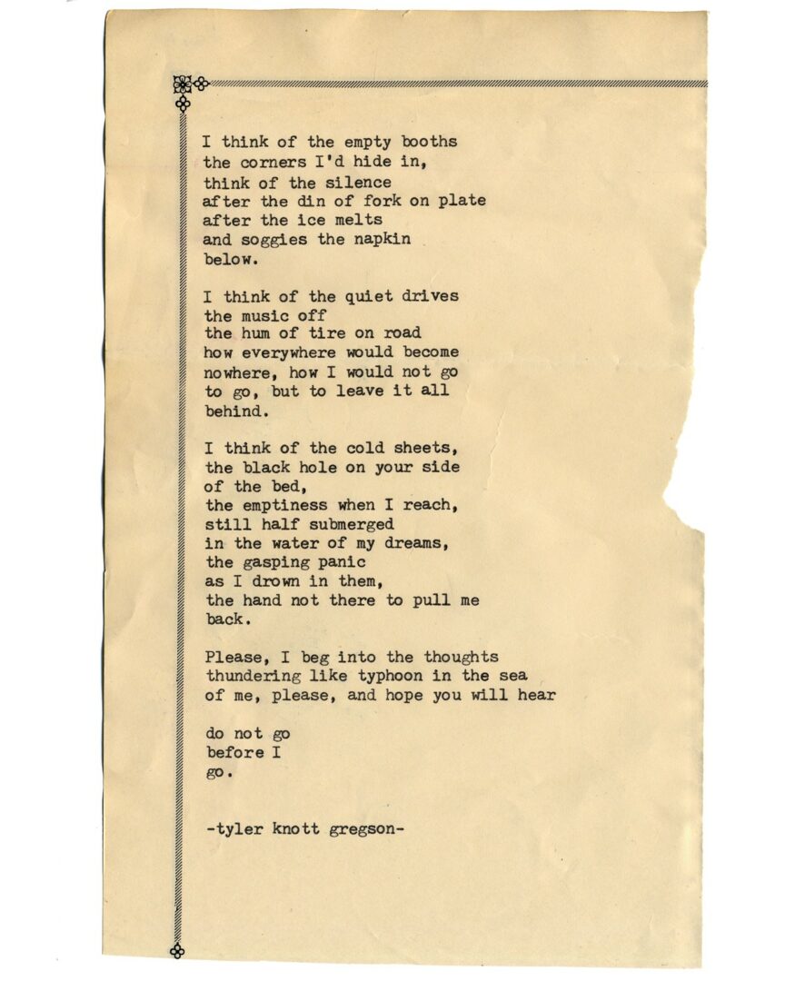 We’re looking forward to introducing you to Tyler Knott Gregson. Check out our conversation below.