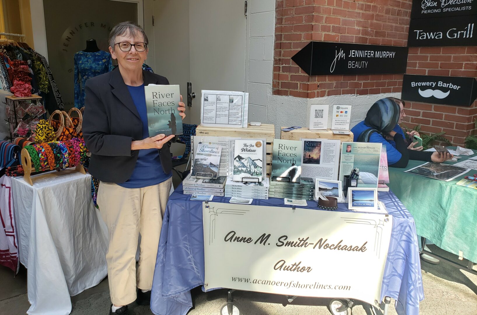 Photo credit for introductory photo and photo of book display to Leo, fellow vendor, used with permission.