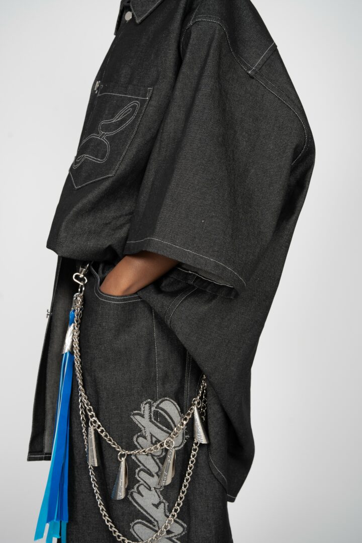 My name is Aubrey Briggs, and I am an Indigenous luxury streetwear designer based in Paris, France. As a member of the Lumbee Tribe of North Carolina, heritage has always been my inspiration, and I aim to shine light on the beauty of both Indigenous tradition as well as contemporary Native American culture, through the lens of streetwear. The brand brings luxury streetwear into a new context, centering on culture and craftsmanship, forging connections, and giving back to Indigenous communities across Turtle Island. From oversized silhouettes reminiscent of hand-me-down tokens of intergenerational passage, to prints drawn from polaroids found in family archives, the brand is steeped in nostalgia and a feeling of community, where a denim jacket is more than a garment, it tells a story. Our breakout collection, entitled LUMBEE9>, gets its name from a photograph taken of my grandmother standing in front of an old street sign in Lumberton, North Carolina, indicating our community was nine miles in that direction. Although based in Paris, it serves as a reminder that I am never far away from home or the people I come from — the people I am inspired by, and the people I design for.