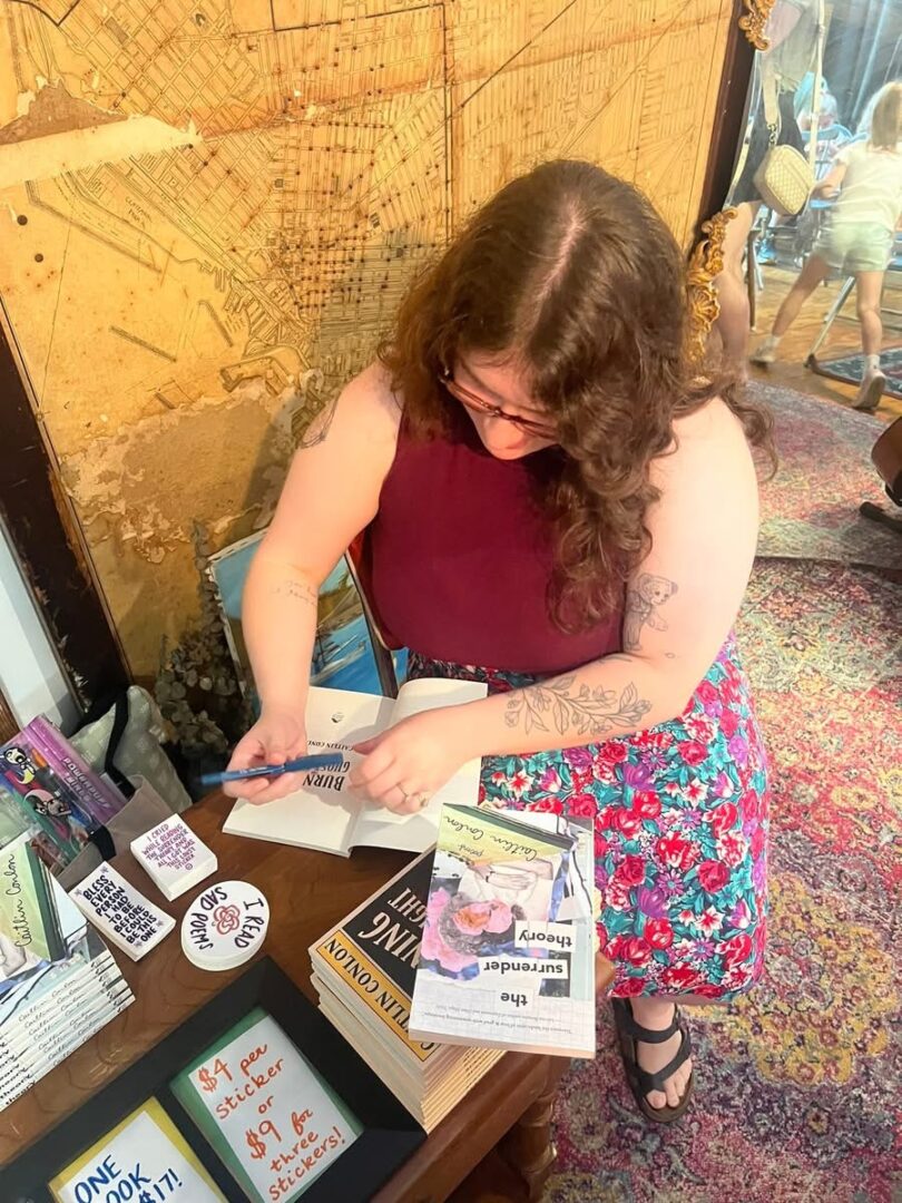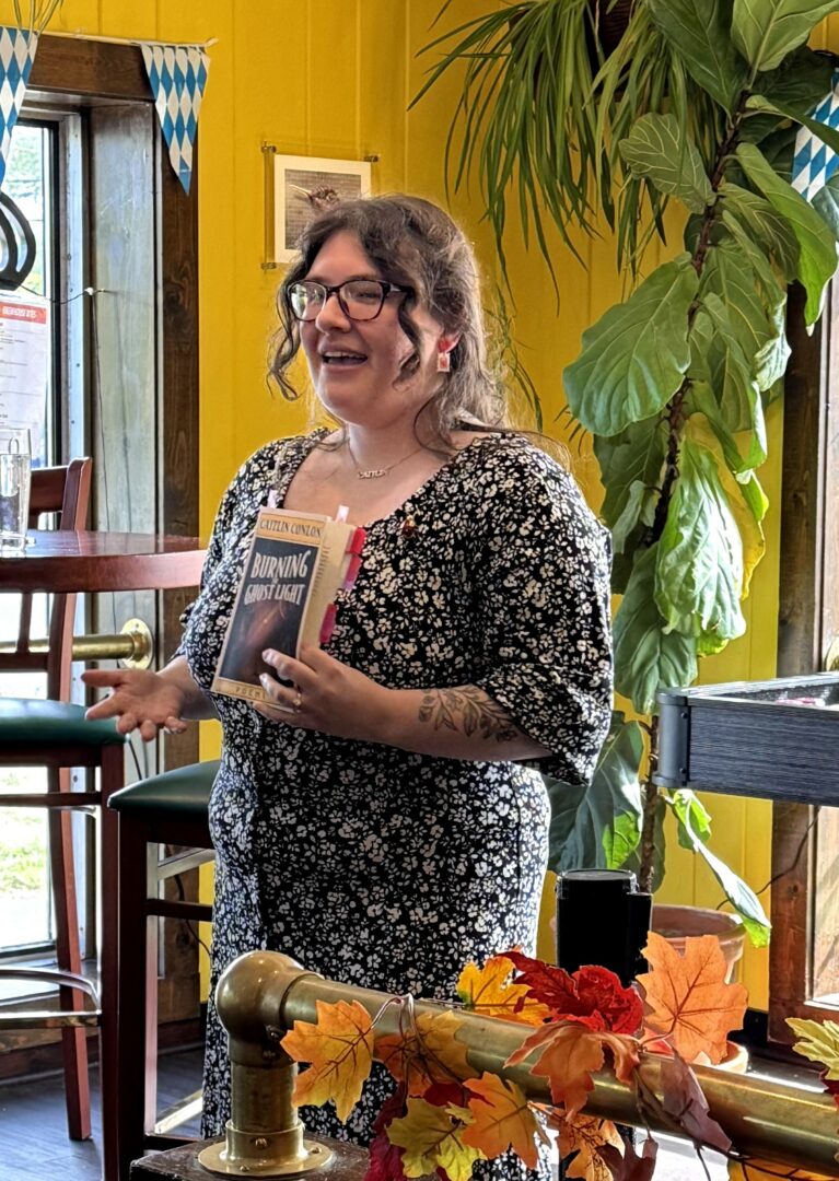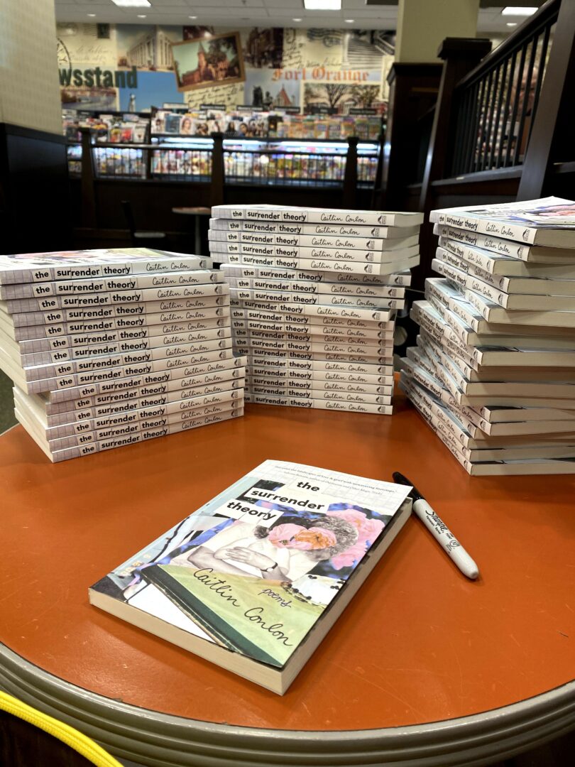 Hi! My name is Caitlin Conlon (she/her). I’m a Leo that owns way too many books. I’m also a writer, workshop facilitator, editor, and bookseller. My most recent poetry collection, Burning the Ghost Light, was released in September of 2025, and my first collection, The Surrender Theory was released in 2022 (both with Central Avenue Publishing)!