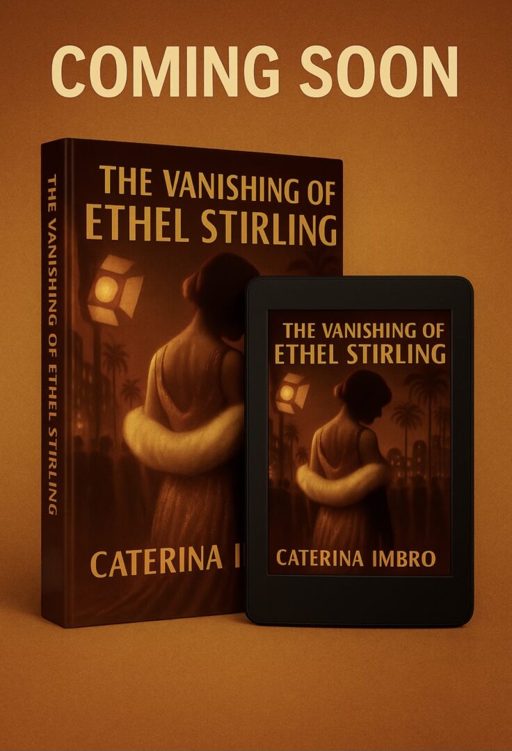 I’m a Sicilian-Australian writer and storyteller, and right now my world is orbiting around my upcoming novel, The Vanishing of Ethel Stirling. It’s a historical fiction mystery set in 1920s Hollywood, unfolding across the chaotic transition from silent reels to talkies. The story follows a brilliant, volatile actress who disappears, told through the people who loved her, used her, and tried to save her.