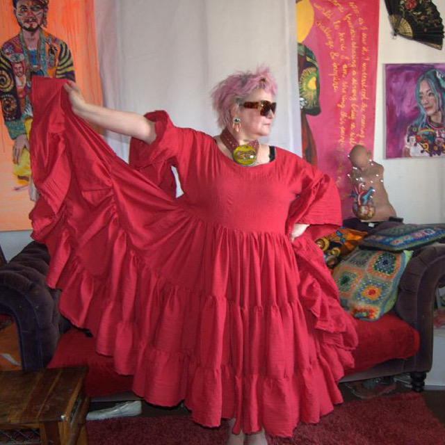 Because I work with fabric as my primary medium, I’m often referred to or described as a designer or seamstress. It’s an easy mistake to make but for me, it couldn’t be more inaccurate. As a very political person who really rails against exploitation within industries under capitalism ( a basic profit model), I cannot align myself with the fashion industry. I do not follow trends,or the fashion calendar. I stay deliberately ignorant to what’s currently in fashion and create from a place of personal excitement and inspiration. I consider myself an artist, neurodivergent advocate and storyteller, using my pieces to challenge the norms of society. I invite the wearer to step up to their fullest , hidden potential, to take that leap of faith into their truest self, leaving behind the need to hide in the shadows, taking up maximum visual space. I also work with grief as my teacher, helping others connect with their own losses through creating wearable altar pieces in memory of their loved ones. I also love to nurture unabashed self love in women by encouraging them to wear their own image as a two fingers up to societies need to stay small as women under Patriarchy. To have your own back is a liberating and empowering stance as a woman during these regressive times.