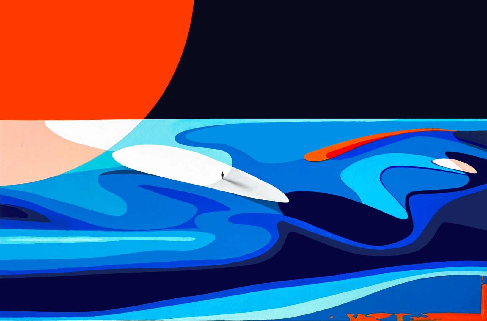 A normal day begins with observation — stepping outside, watching how the light shifts across the Long Island horizon, and letting those gradients guide my palette for the day. Once I’m in the studio, the work moves between instinct and precision: layering color, refining linework, and exploring forms that echo movement, tension, and atmosphere. My practice lives at this intersection of meditation and technical discipline.