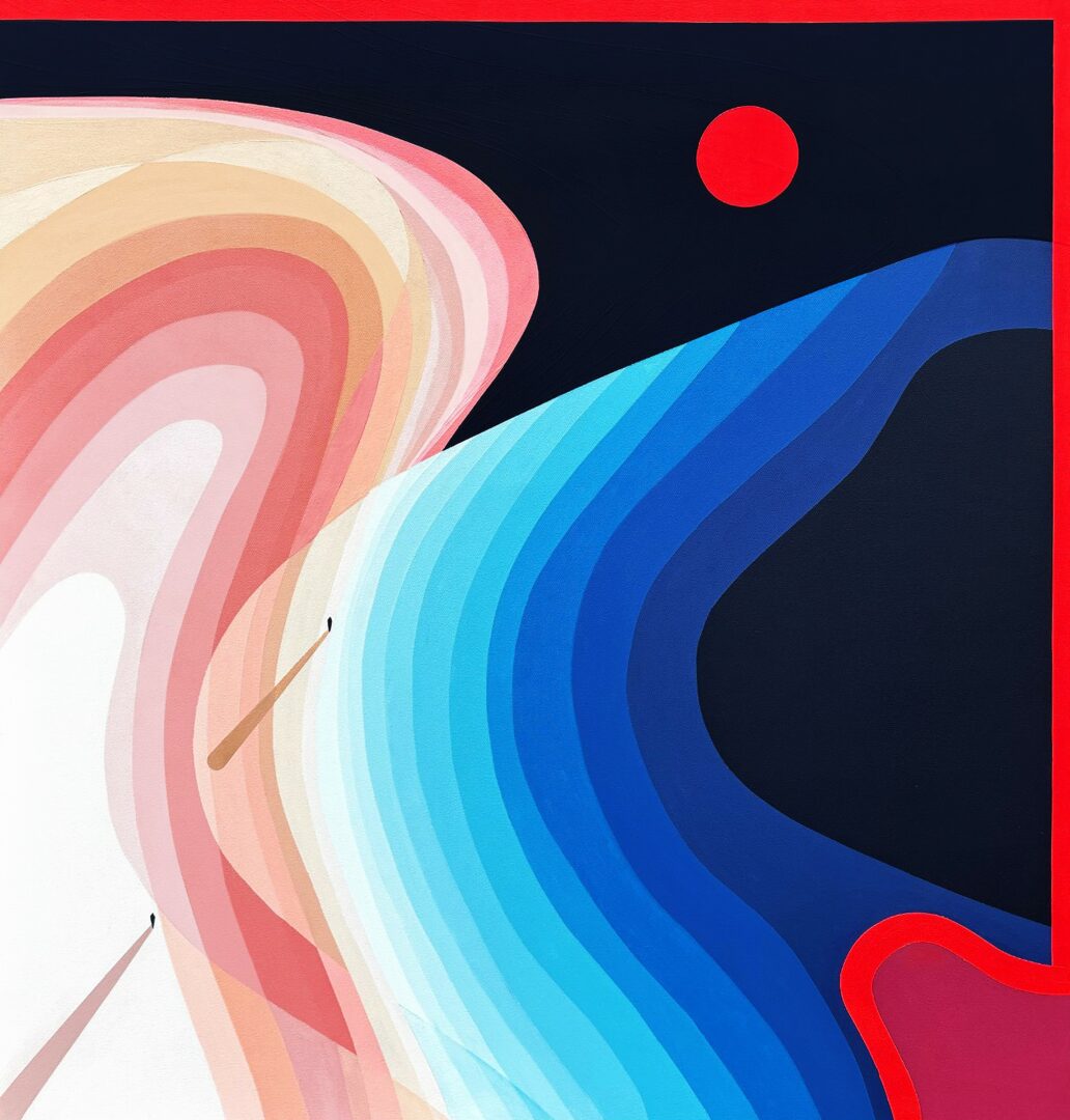 A normal day begins with observation — stepping outside, watching how the light shifts across the Long Island horizon, and letting those gradients guide my palette for the day. Once I’m in the studio, the work moves between instinct and precision: layering color, refining linework, and exploring forms that echo movement, tension, and atmosphere. My practice lives at this intersection of meditation and technical discipline.