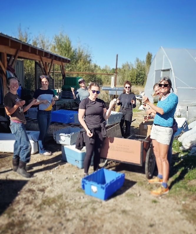 I’m Leslie Witter, farmer and owner of Root to Rise Gardens, a half acre market garden just outside of Red Lodge, MT. We use organic and regenerative agricultural practices to grow high-quality greens and quick crops that we market hyper-locally within 4 miles of the farm. Our goals are to increase the availability of local veggies in our cold climate, foster soil & ecosystem health, and provide a living wage & good quality of life for ourselves & future workers. We also aim to encourage more community involvement in local food. One new aspect of the business that we’ve been working on the past few years is developing a work-trade program. Currently, we host 11 work-traders during the summer season who each work a weekly 3-hr shift in exchange for a $45 veggie box. This has been a great way to build community, get more folks involved in growing food and help meet our labor needs.