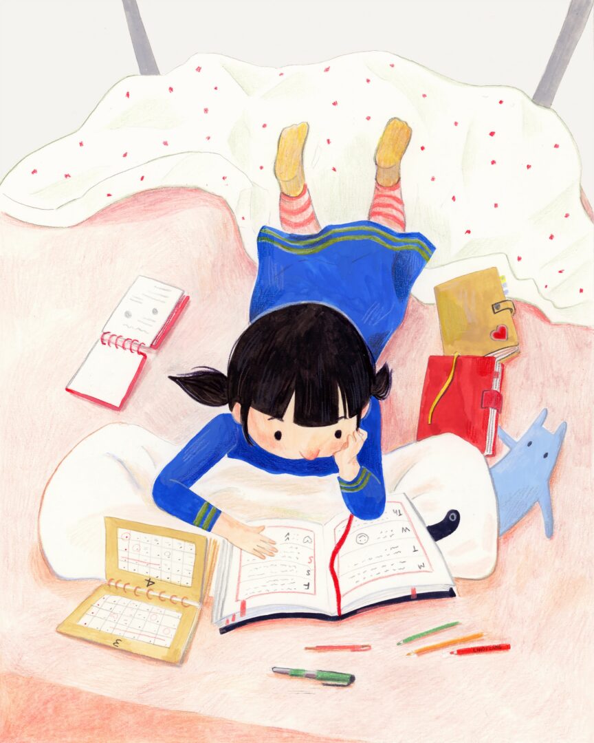 My name is Cindy Kang, and I am an illustrator based in New York. Since graduating from the School of Visual Arts, I’ve created illustrations for various clients in editorial, advertising, and publishing. Recently, I have been focusing on making children’s books and developing a drawing series about childhood, working towards my goal of writing and illustrating my own book. I enjoy creating narrative art that makes you think about the character, their stories, and their voices. When I’m not drawing, I refuel my creativity with various kinds of stories around the world that I gather from books, movies, traveling, and spending time with friends.