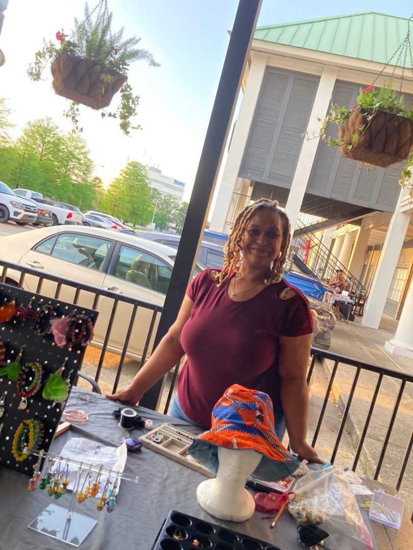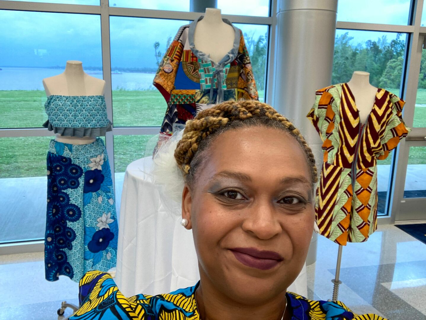 My name is Darlynn Marks. I am a seamstress serving the north Baton Rouge area for the last 13 years. I specialize in plus size clothing, custom jewelry, and alterations. Sewlynn Jewelry and designs is currently in a pivot. We are stepping away from custom clothing to focus more on accessories and outerwear. We are also focusing more on up cycling and clothing sustainability. We are achieving this goal by up cycling pre loved African print garments into new and exclusive outerwear, accessories, and even kitchen apparel.