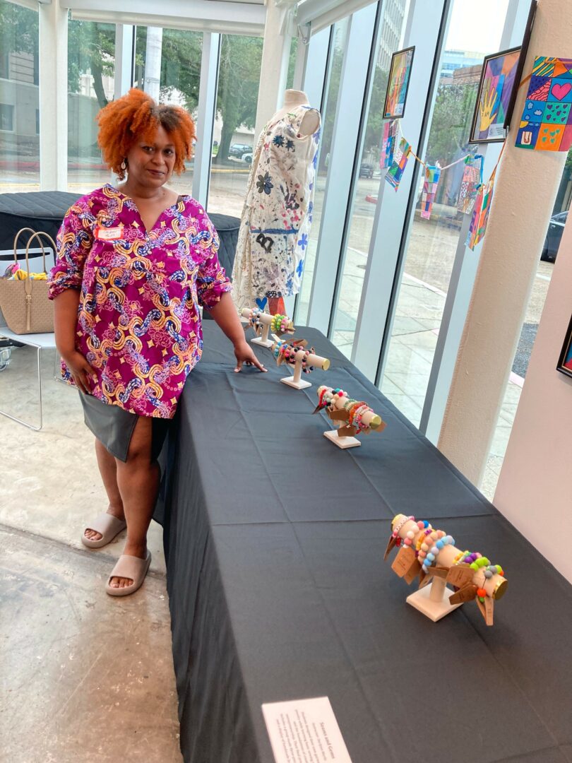 My recent moment that made me laugh or feel proud, was working on an art exhibition with my summer school students. I’ve spent this summer collaborating with Big Buddy mentorship program of Baton Rouge, Louisiana as an art content provider, teaching summer sewing classes and kids jewelry making. My students were given an opportunity to show and sell their jewelry and artwork, at a youth exhibition held by the Arts council of Baton Rouge. I felt really proud watching my students sell their bracelets and talk about their sewing collaboration project.