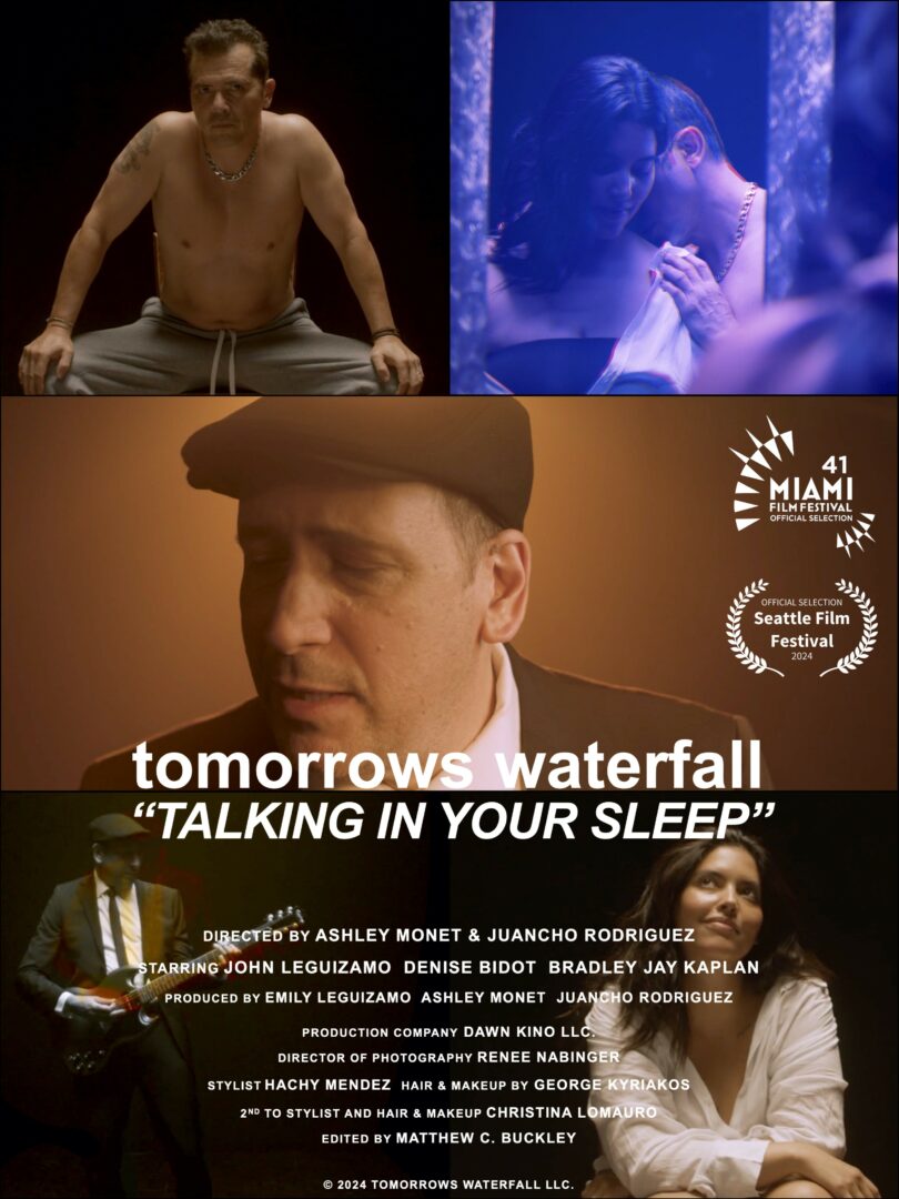 I’ve become a close collaborator of the new music project ‘tomorrows waterfall,’ having co-directed and co-produced the music video for his debut single ‘TALKING IN YOUR SLEEP,’ starring our very own John Leguizamo and supermodel Denise Bidot. TALKING IN YOUR SLEEP went on to premiere as a Special Presentation at the 2024 Miami Film Festival, and was awarded ‘Best Music Video’ at the 2024 Seattle Film Festival. The music video is now available everywhere on YouTube. It’s very fitting to mention that I have several projects in the works with ‘tomorrows waterfall, and I’m quite excited to share them with the world.