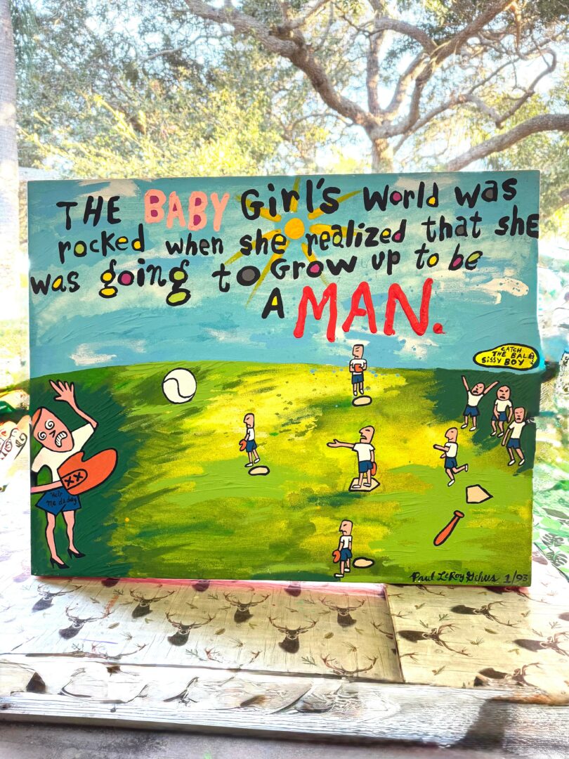 Catch the ball sissy boy. The baby girl’s world was rocked when she realized she was gonna grow up to be a man. 1993. Image attached.