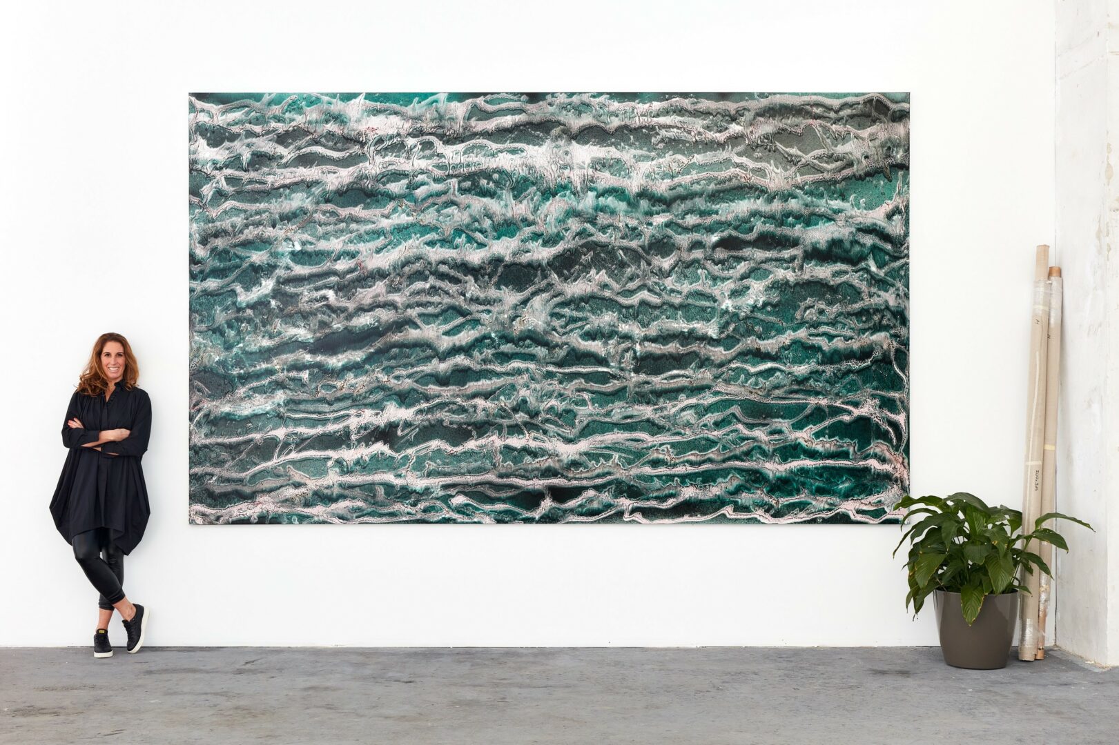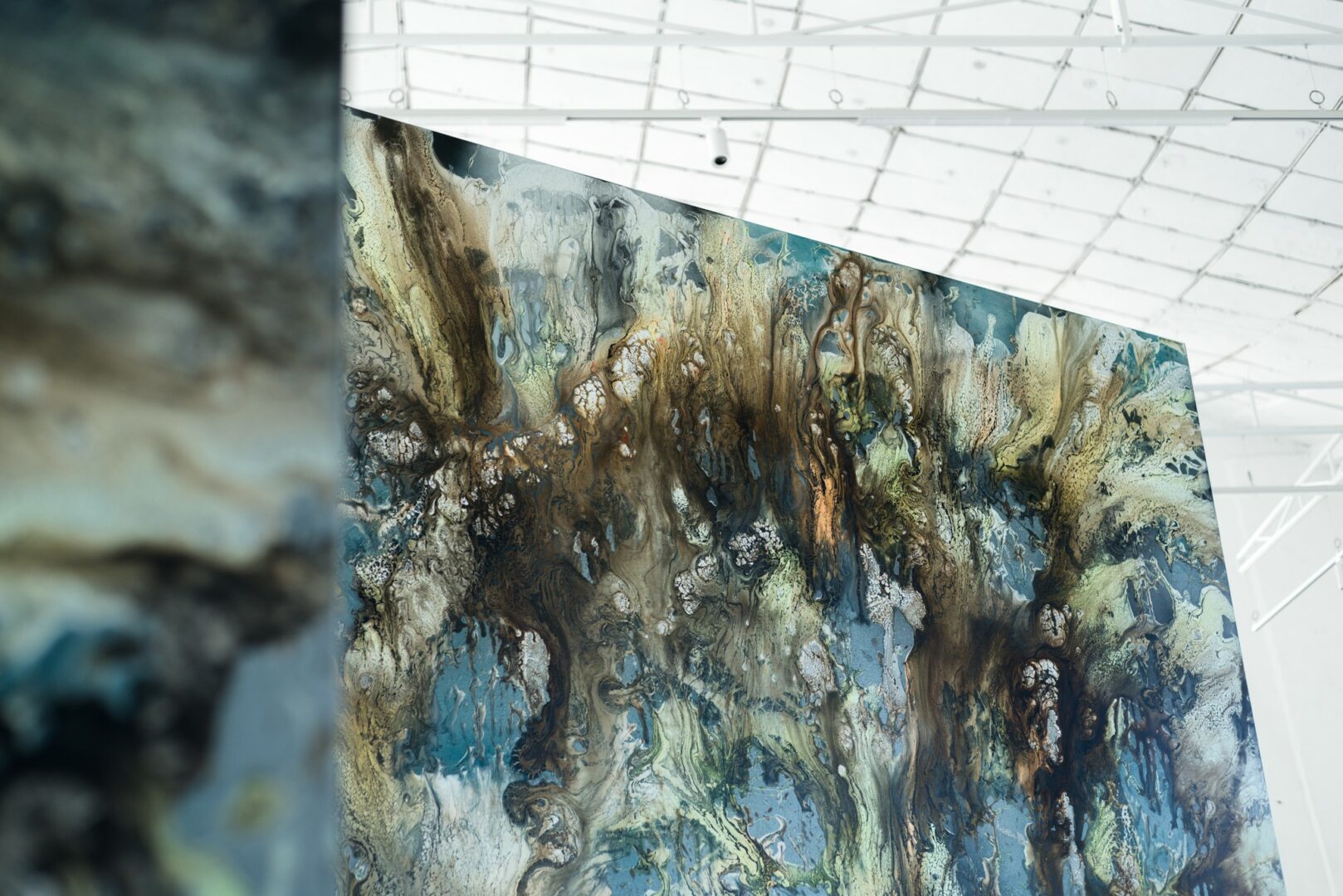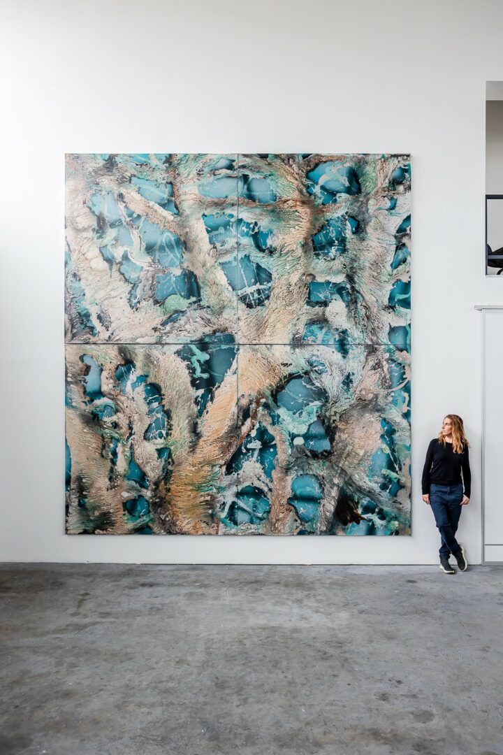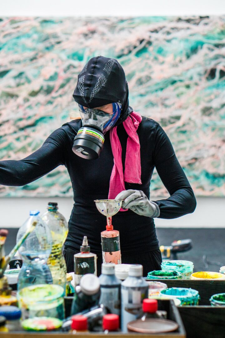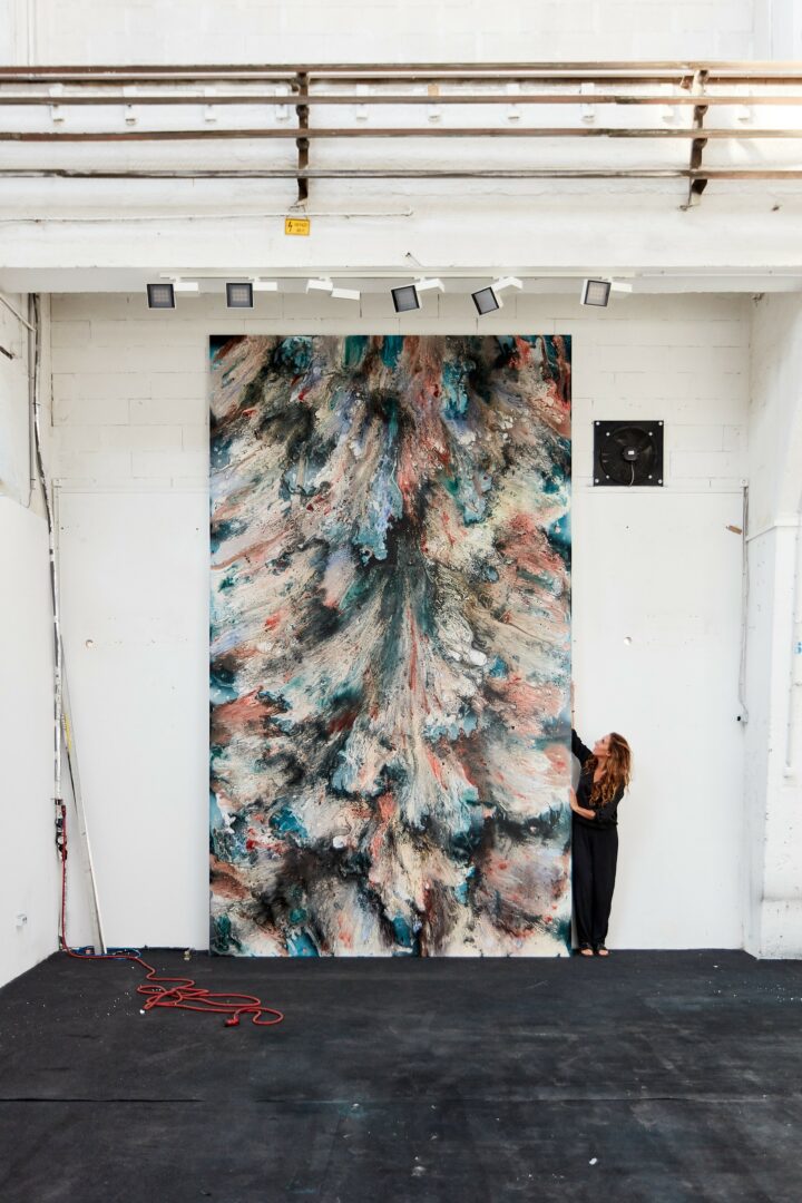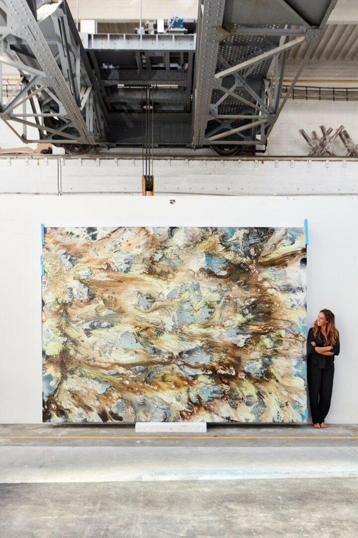 I’m constantly drawn to new challenges — whether that means pushing scale beyond what seems practical, or expanding into new mediums such as video, sound, glass, textile or installation. I enjoy testing the boundaries of what painting can become, and how it can respond to the times we live in. My studio is a self-contained universe, a microcosm where I reflect on both the environmental and existential crises surrounding us. Through these processes, I search for an order within chaos, for harmony in systems that appear unstable or unpredictable.