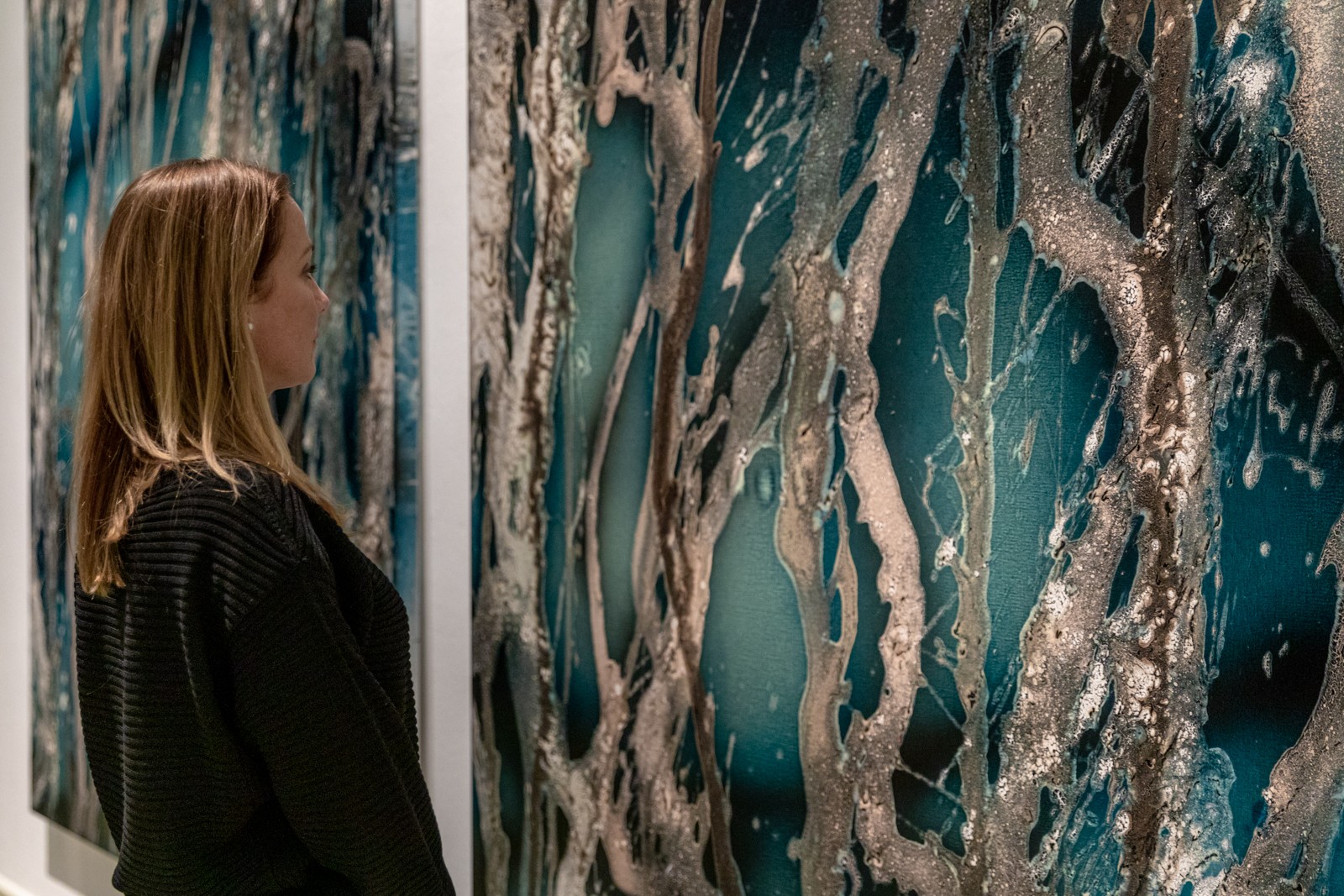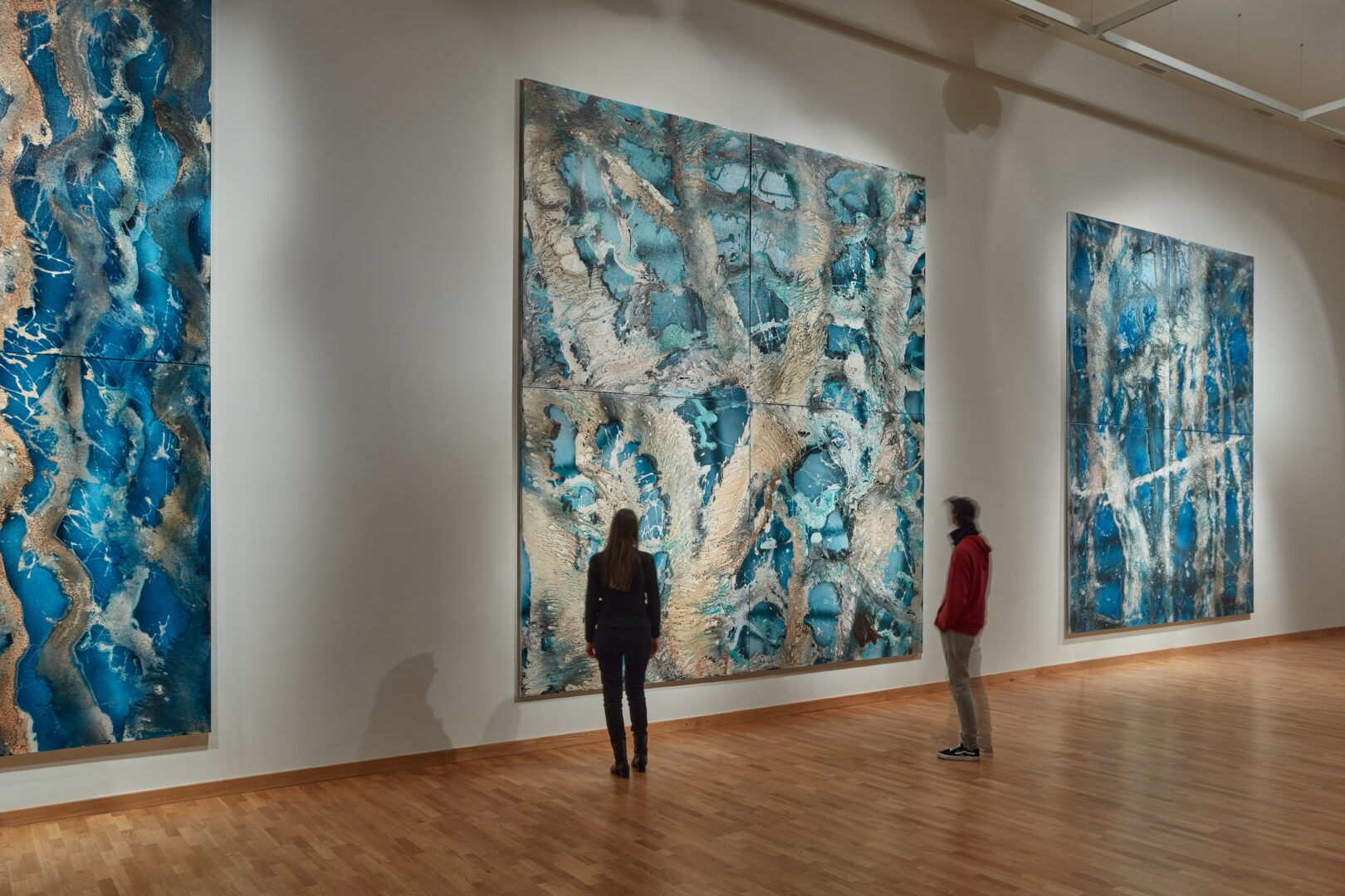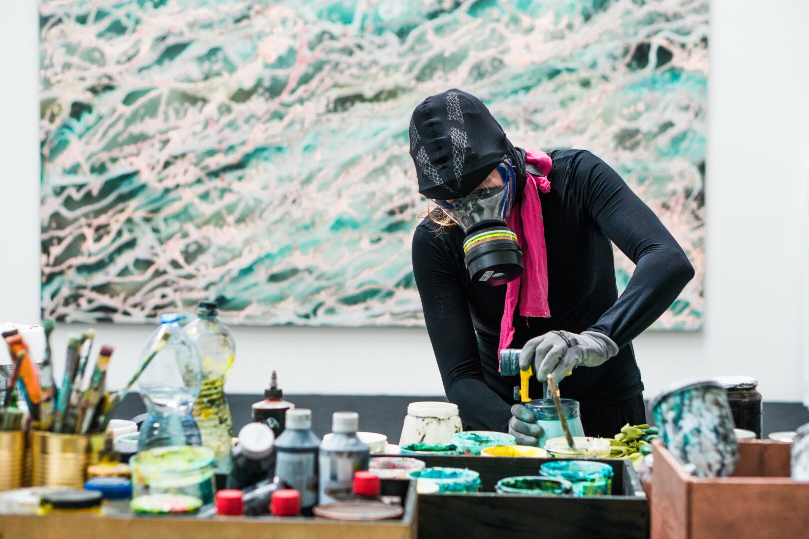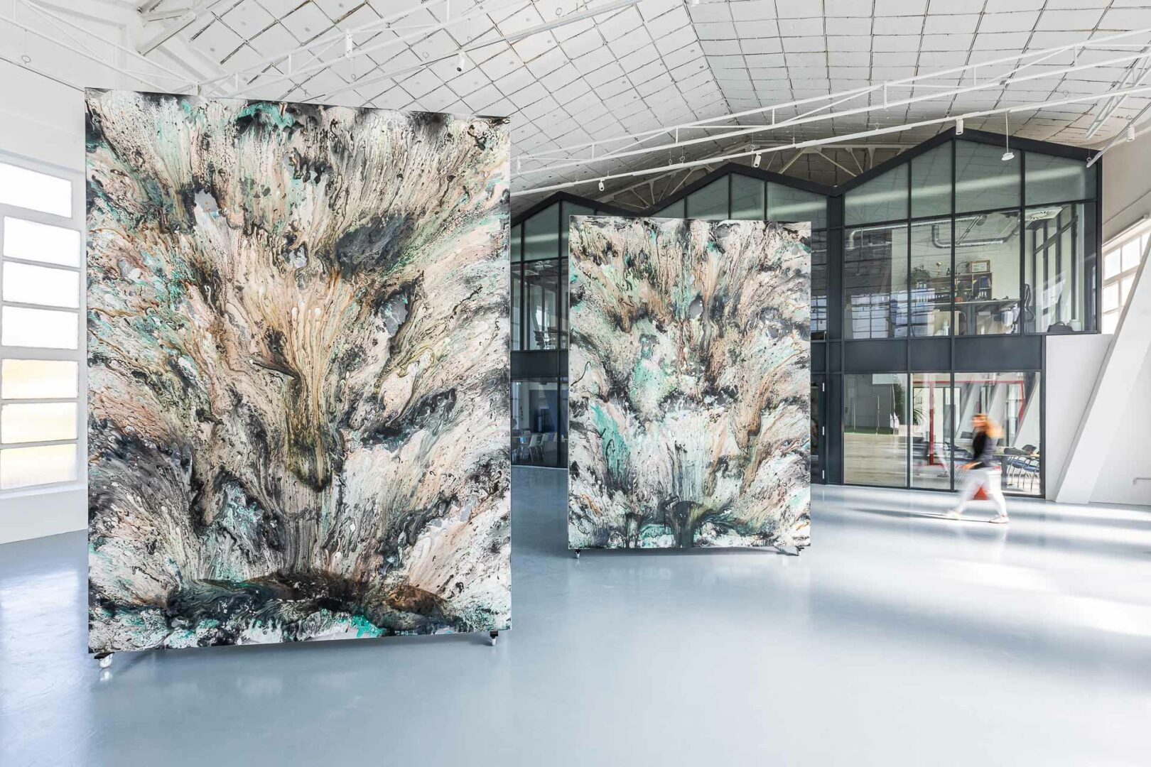 I’m constantly drawn to new challenges — whether that means pushing scale beyond what seems practical, or expanding into new mediums such as video, sound, glass, textile or installation. I enjoy testing the boundaries of what painting can become, and how it can respond to the times we live in. My studio is a self-contained universe, a microcosm where I reflect on both the environmental and existential crises surrounding us. Through these processes, I search for an order within chaos, for harmony in systems that appear unstable or unpredictable.