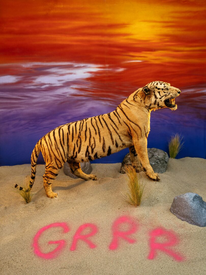 I’m Peter Ivancovich, a Los Angeles based artist working mostly with photography. My practice explores world creation in set pieces that are many times diorama like in nature. The demise of of Hollywood studio system is a theme so I having been using old props and hand painted vintage backdrops as well as taxidermy and objects I make myself to tell my visual stories. I work on a sand base in my studio representative of the deserts and beaches of Southern California. As a queer artist, many of my pieces are filtered through my experience and reflect that perspective as well. Currently, I am collaborating with British writer/performer James Antoniou on two new series that involve figurative work harking back to the fashion photography I did in the past. I am really excited to reveal those to the world.