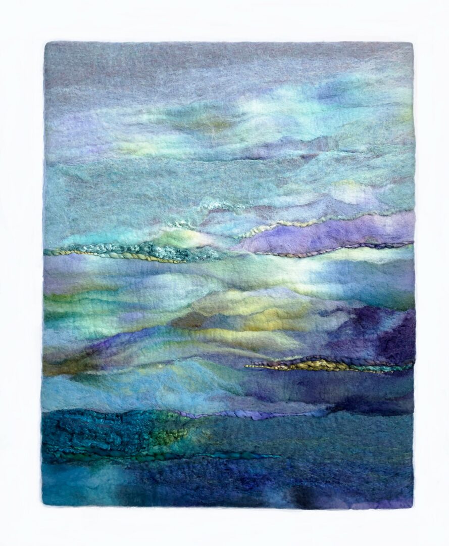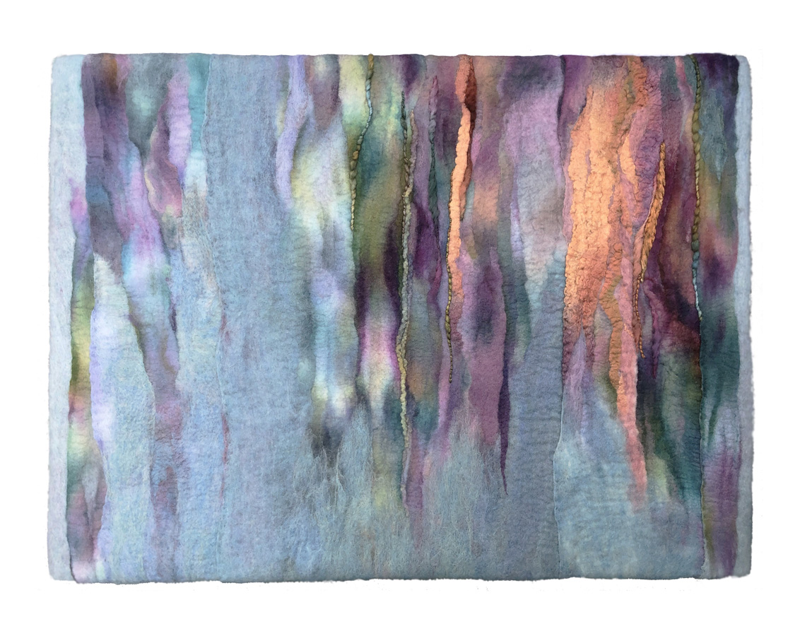 I have been a fiber artist for 45 years, making handmade felt wall pieces. When I started, handmade felt had recently been found in Siberian tombs, and some of us in the US were curious about the medium. It has proved to bean amazing medium for art, with endless possibilities of color, shape, and texture.