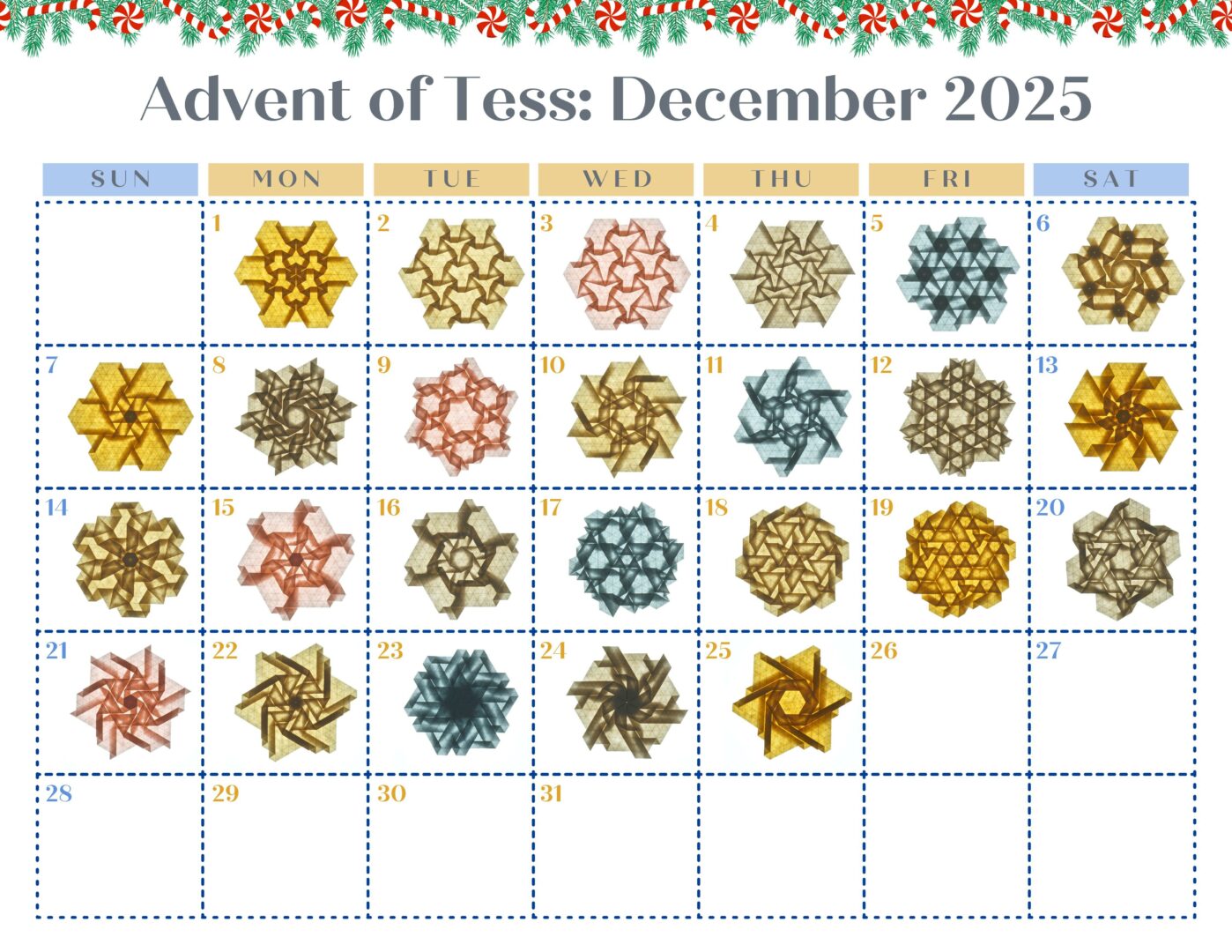 My name is Madonna Yoder and I’m obsessed with finding new repeating patterns that can be folded from a single sheet of paper. These patterns are called origami tessellations and I use my business, Gathering Folds, to teach people how to fold these patterns for themselves and provide the supplies needed to fold them. My biggest event every year is my Advent of Tessellations challenge, where I release a new tutorial video every day from December 1-25 and hundreds of people around the world fold these patterns at the same time.
