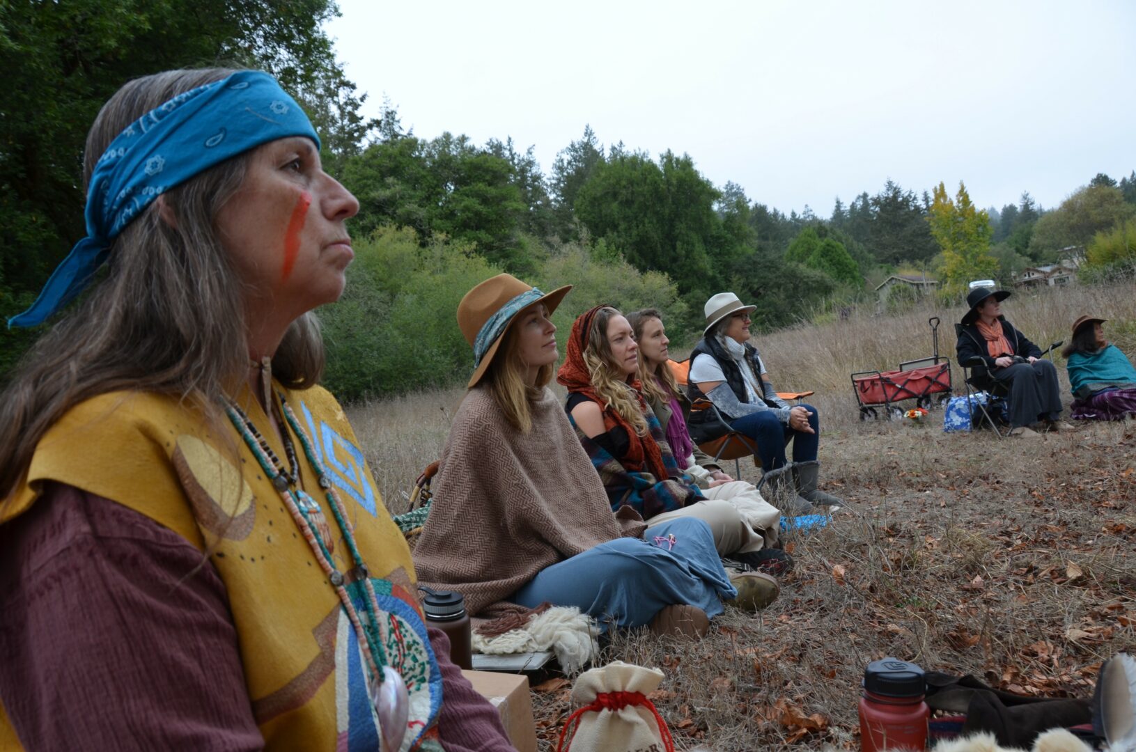 On ceremonial days, things switch around some and the hours are replanned for the gathering of the community. Sometimes ceremony is online. That takes less get ready. When it’s here at the ranch we get the grotto and medicine wheel area all spruced up. Get the offering materials together and anything else, so we’re ready to begin around 1pm. Sometimes we’ll go into the evenings, and shorter ceremonies like TurtleWomyn’s Moon Lodge, we end around 4 pm and have potluck after with some joyful conversations.