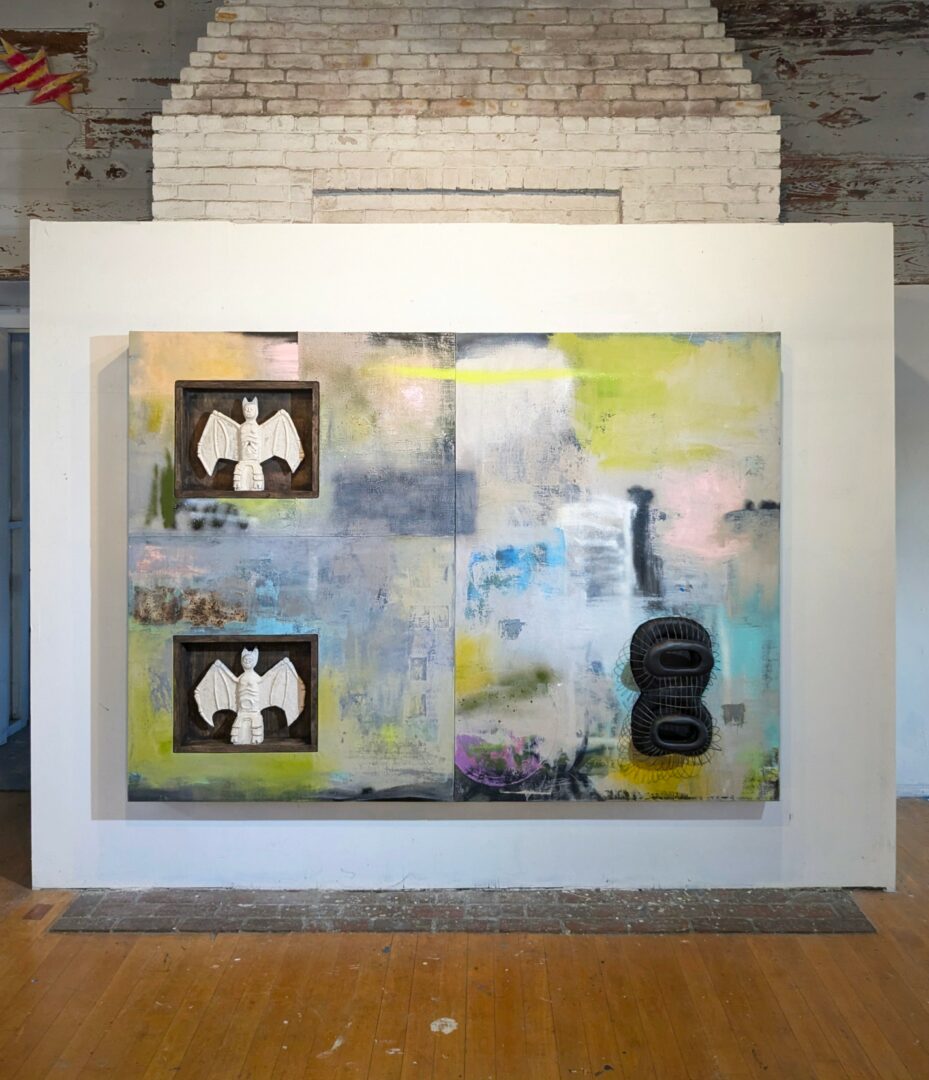 I’m a multidisciplinary artist, and my practice builds from how I internalize the world around me. I’m hyper sensitive to the layered complexity of the contemporary condition, which I refer to as a maximalist barrage of information, immediacy, and stimulation. The oversaturation of all that content accumulates quickly, and I’m like a sponge that sops all of it up. My art is responsive to what builds through that process. I’m interested in incongruence, simultaneity, and multiplicity; in how different things can exist together even when they don’t align. I intentionally use this technique to combine various content within the same work. Meaning forms through relationships that develop within shared space and through discovery rather than control.