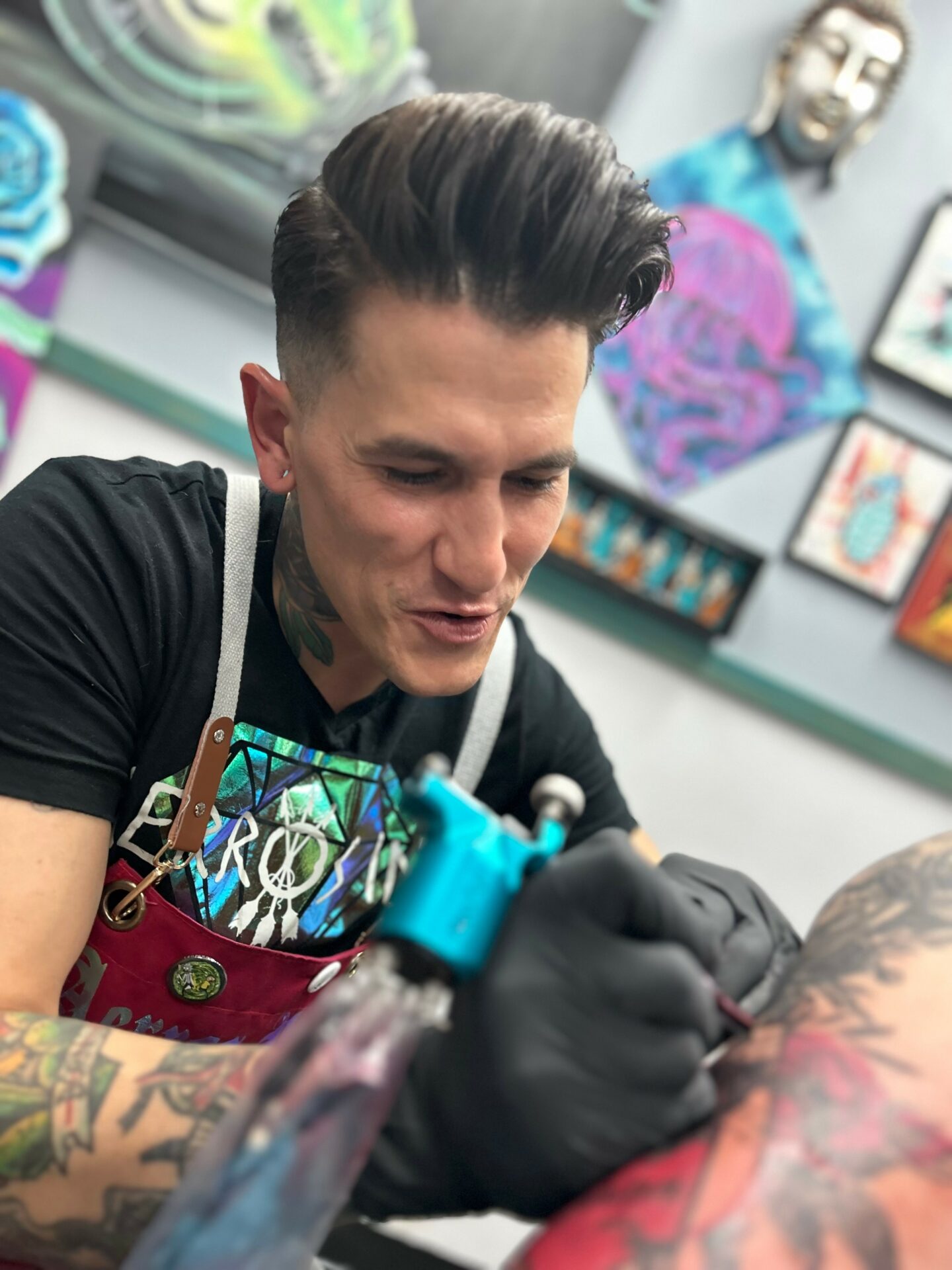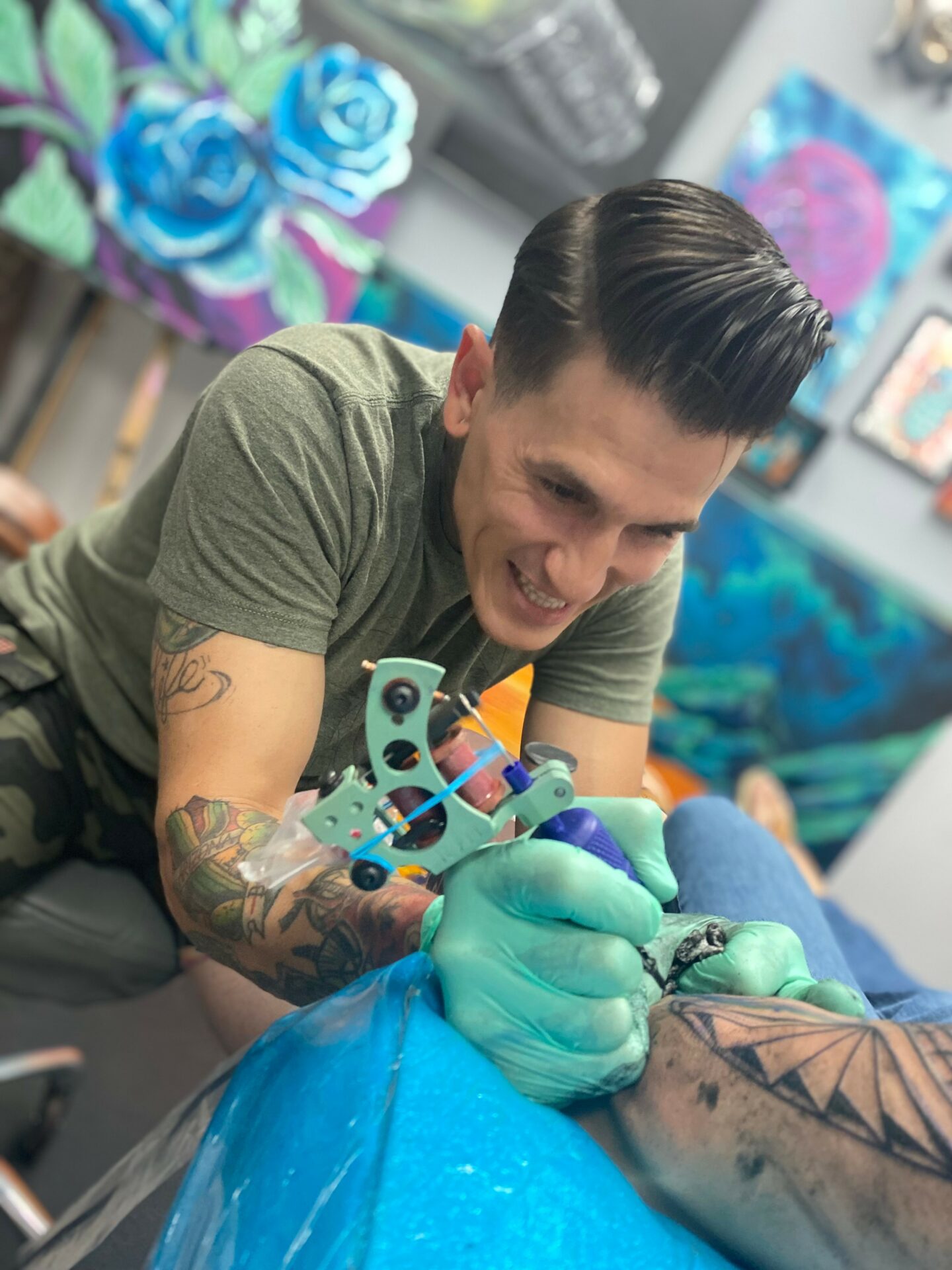 Everyday I wake up and get the opportunity to do what I love, creating art and making people smile. I’ve been tattooing for 15 years now. I’ve met and established relationships with so many people. When I started this career I wanted to try every style so I can help anyone who came to me. throughout my career I’ve been able to provide a happiness with my artwork from covering up some existing artwork or tattooing fresh skin I’m happy for the opportunity. I pride myself on making people have a great experience through artwork and customer service I separate myself from the current industry standards. In the future I am looking into expanding my network. Working with non profits like the cvma and teaching courses like tattoo classes or painting classes