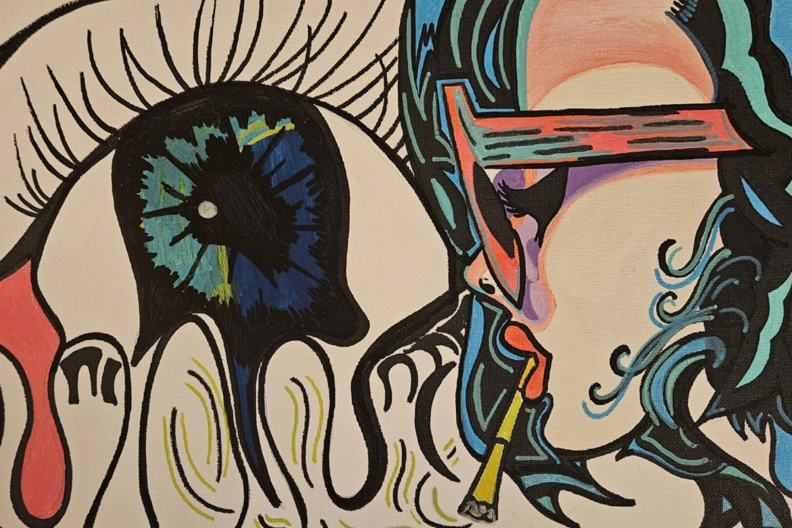 I love how light-reactive art allows me to hide elements in plain sight. Under normal lighting, a piece might look one way, but when the blacklight hits, hidden details emerge, and the energy of the whole work shifts. It’s like creating two pieces in one—there’s the surface that people initially see, and then there’s the secret world that comes to life when the lights change. The ability to alter the emotion of a piece depending on the lighting feels like I’m in control of the viewer’s experience in a really powerful way.