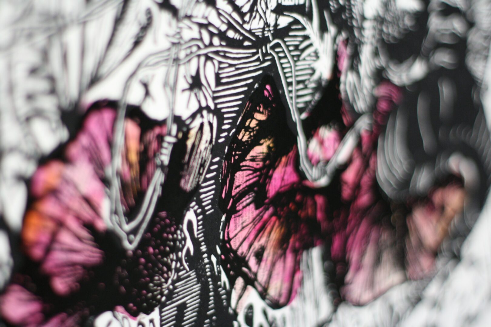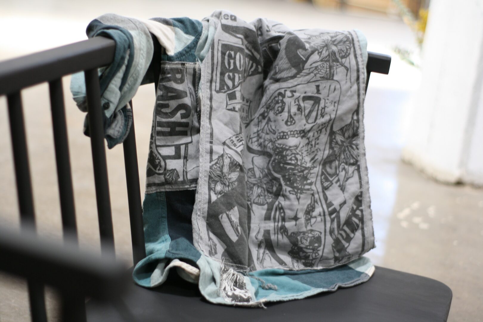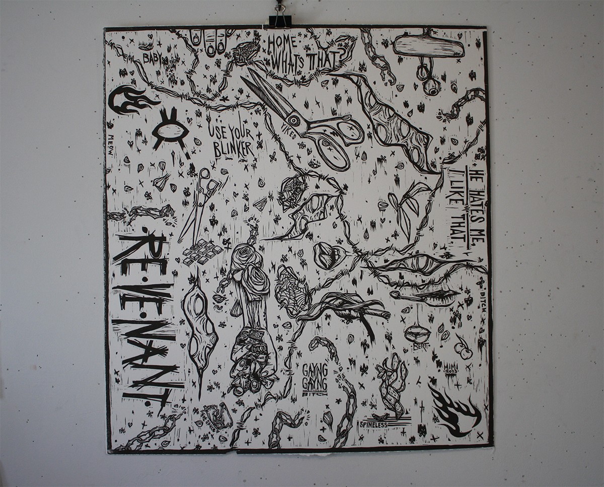I keep my creativity alive by picking up nearly any medium that strikes me. Printmaking will always be my career but sometimes, especially after a decade of merely being a really nice tool in a really nice shop, I need to just flit off and learn stained glass or twist up a field of barbed wire flowers. It’s my way of taking care of myself as a creative tool at the service of others, making sure I still get to make for the sake of making. Lately I have been making more Damnbanas (my version of a bandana, slightly larger and wilder) and collaging as well.