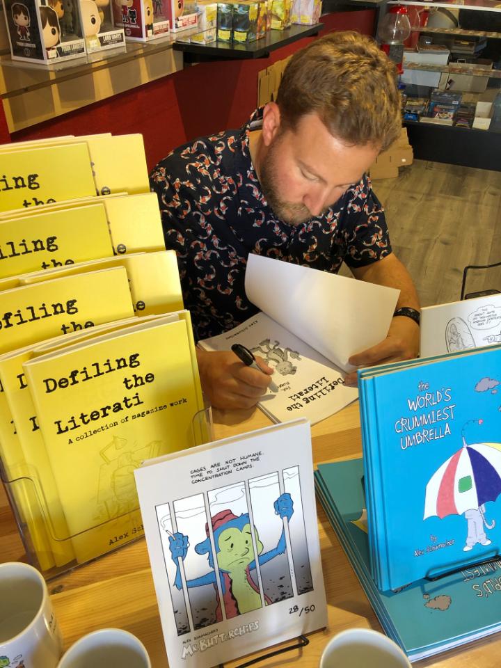 When asked what I do I am always reminded of and rely upon Berkeley Breathed’s quip about how we’re artists with a small “a.” We being cartoonists. There was a time where I tried to avoid labelling myself as such out of sheer pomposity, as though somehow people would take me less seriously if I referred to myself as a cartoonist. Which is in hindsight ridiculous and kind of ignorant, especially considering my earliest formative influences were all cartoons or cartoon-adjacent. Needless to say, I no longer consider it to be a dirty word and have even leaned into the beautiful exaggerations and sharp visual comedy specific to animation and newspaper comic strips. I suppose that’s my roundabout way of saying cartooning is mainly what I do at the moment. Brevity is not. It’s probably fair to say I’m also a writer since I’ve had a number of short stories published along with articles for comics industry outlets like Monkeys Fighting Robots and Comic Book Yeti. I’ve recently started painting lessons in earnest too, but I would not call myself a painter. Yet.