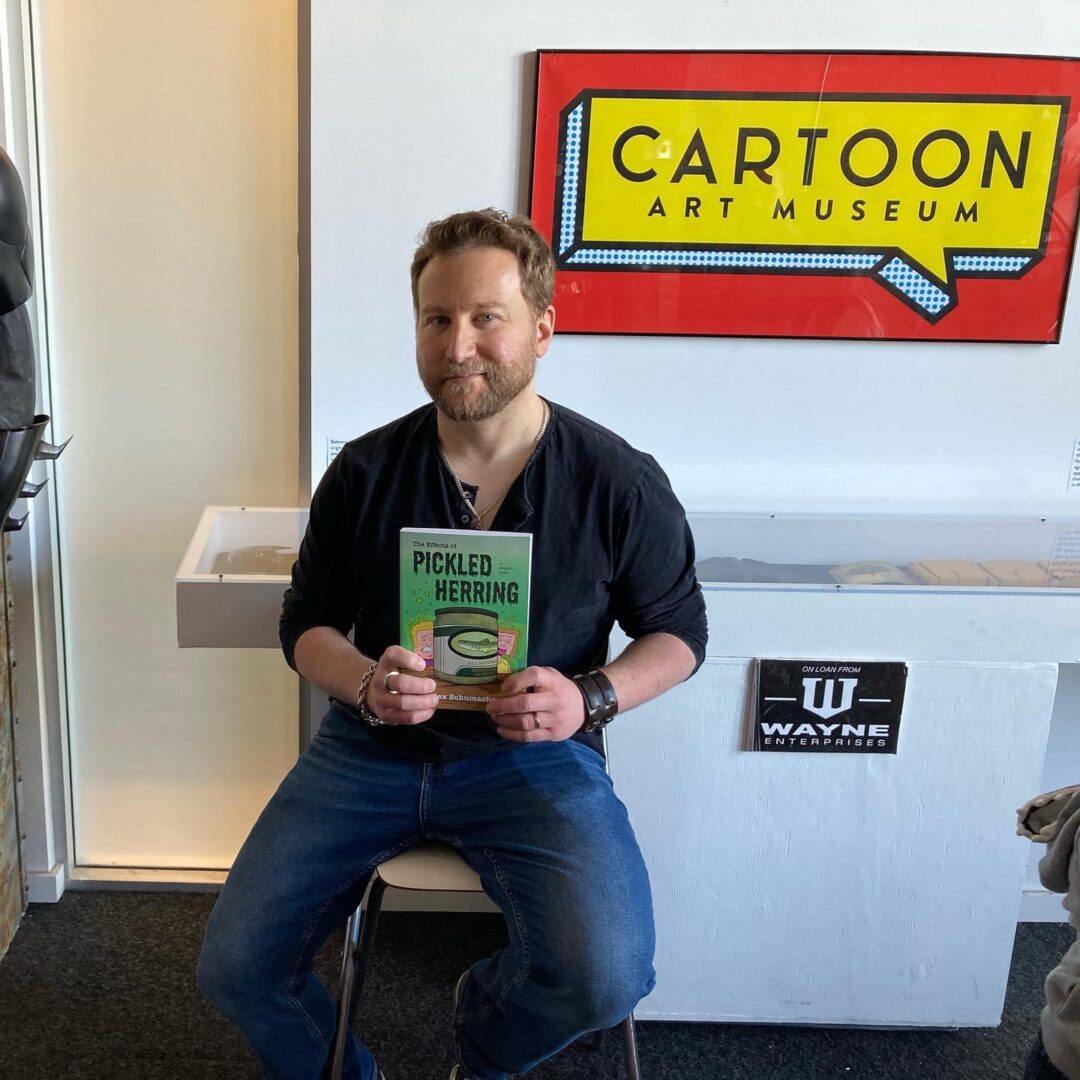 Since then I’ve produced another webcomic, Mr. Butterchips, which was later collected by indie comics luminaries SLG Publishing, designed promotional material for the rock band Toadies—a favorite of mine—and, most recently saw my first middle grade graphic novel released in March of this year titled The Effects of Pickled Herring. The latter revolves around twelve-year-old Micah Gadsky who, while preparing for his joint b’nai mitzvah with his sister, learns a heartbreaking truth about his grandmother’s wellbeing. Personalities collide, creating division and discord at a time when the family needs each other the most. Before Micah can become a man, he must brave the storms of grief, confront the complexities of growing up, and ultimately, learn to lean on love when life trips him up. I’m incredibly proud of this book as it is a love letter to both my Jewish culture and my dear grandparents who are no longer with us. The Effects of Pickled Herring was even featured in a School Library Journal article about graphic novels where grandparents play a significant role!