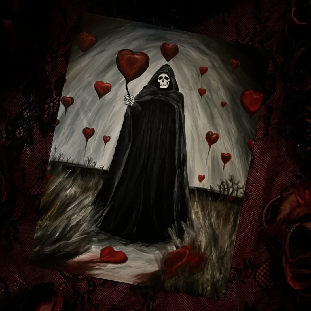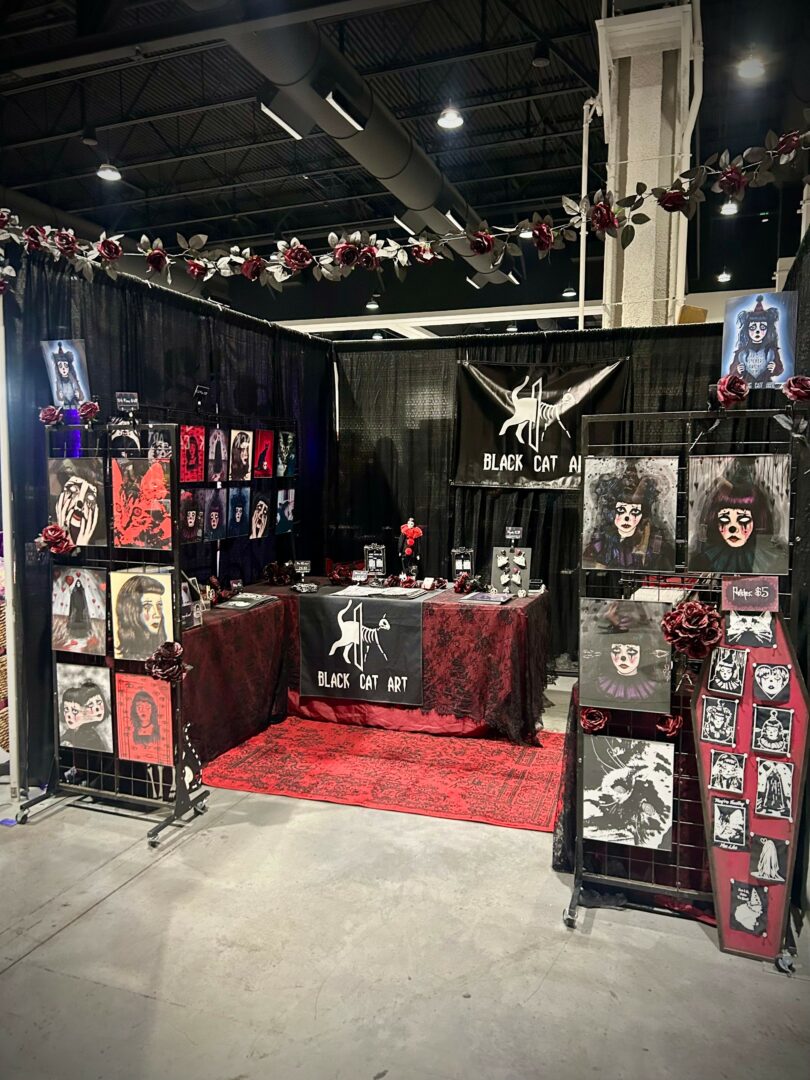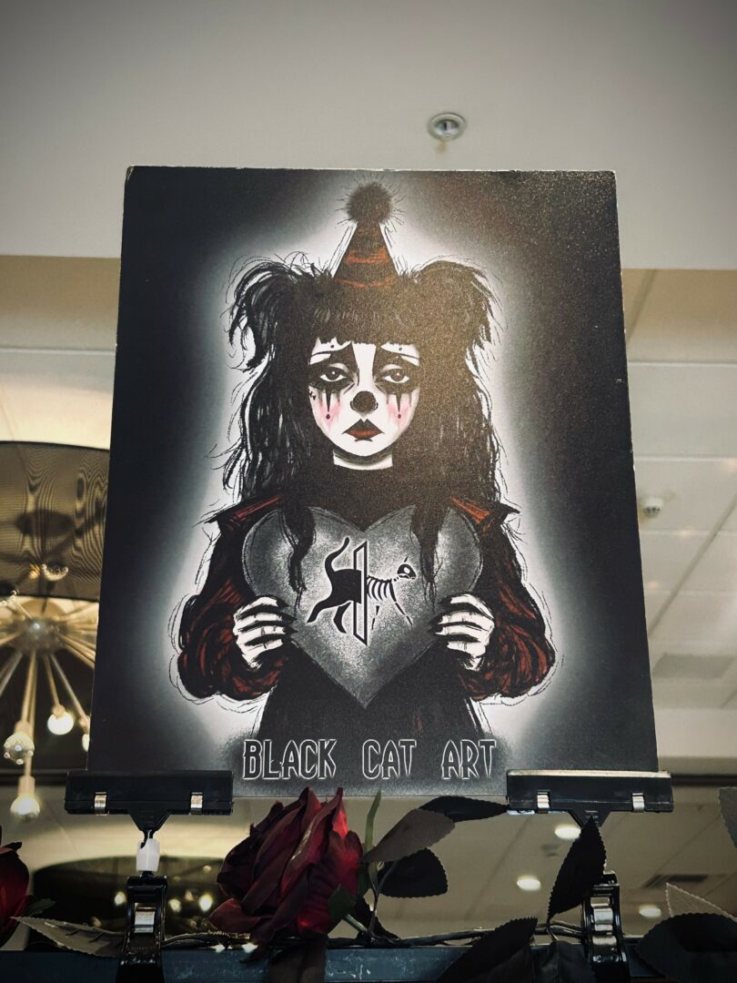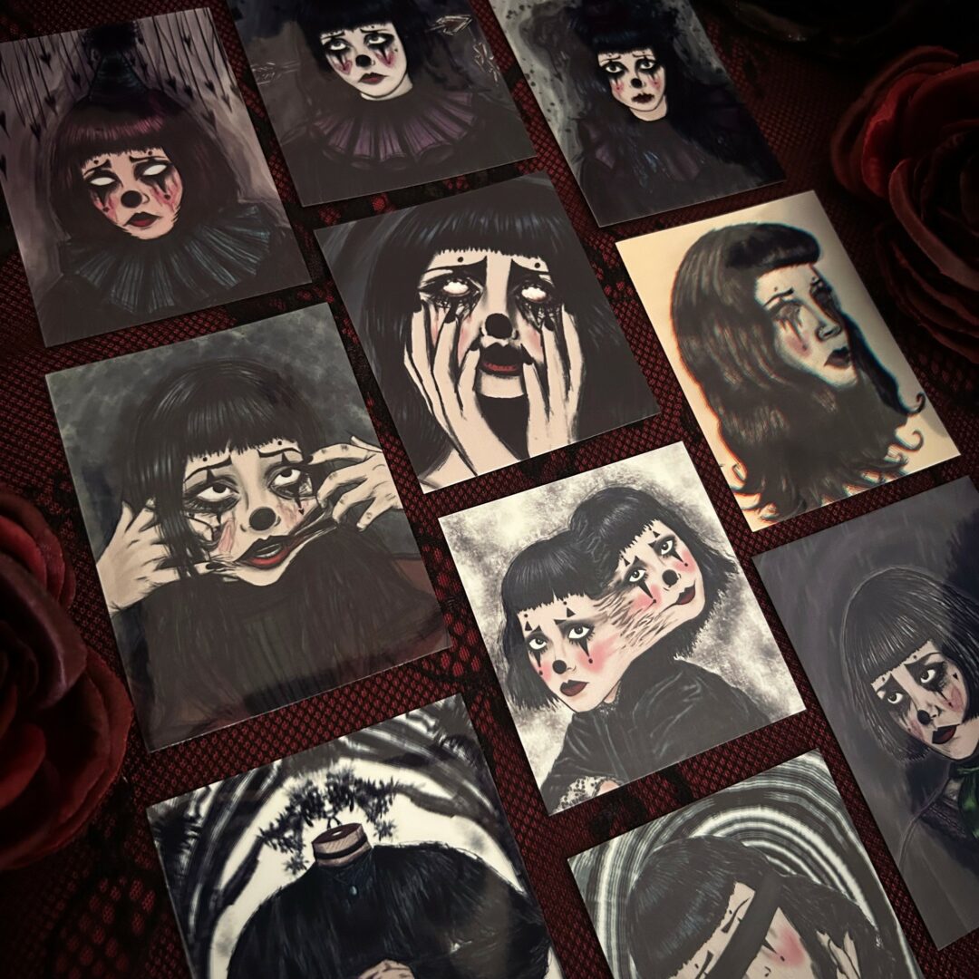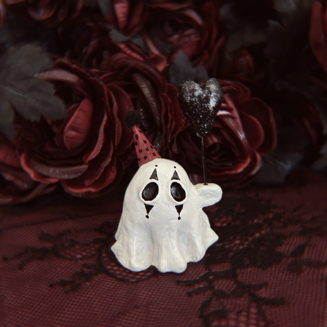 I’m the artist behind Black Cat Art, where I create pieces that live somewhere between the eerie and the tender. My work includes painted clay ghosts holding heart-shaped balloons, sad clown girls, whimsical cat prints, and other little oddities that feel like pieces of stories, sentimental, strange, and quietly emotional. What excites me most is the connection people have with my work. Someone might see something and tell me it made them feel seen or that it spoke to them in a way nothing else has. That kind of emotional exchange is what keeps me creating. Lately, I’ve been expanding my mystery box series themed around phrases like “Shadows in Bloom” or “Love Letters Never Sent.” Each one is a small world of art, words, and keepsakes that tells a story. I also continue to vend at events across Southern California, and I hope to reach other parts of the state and the country next year, where people can experience the work in person and maybe take home something that resonates with them.