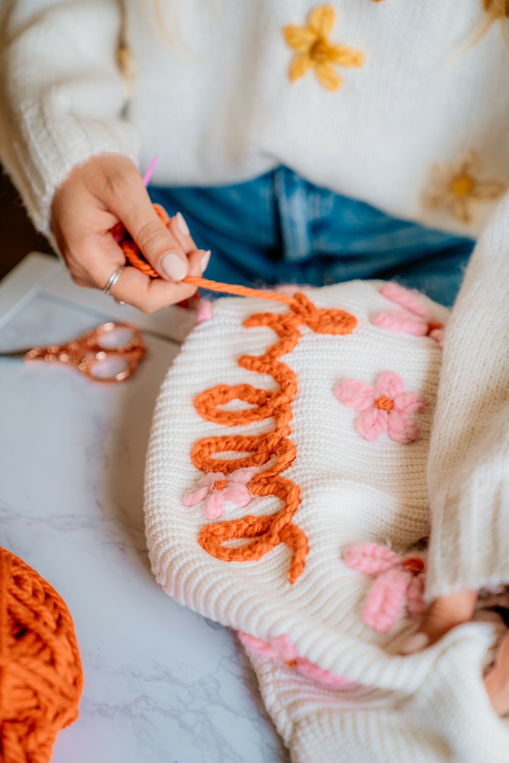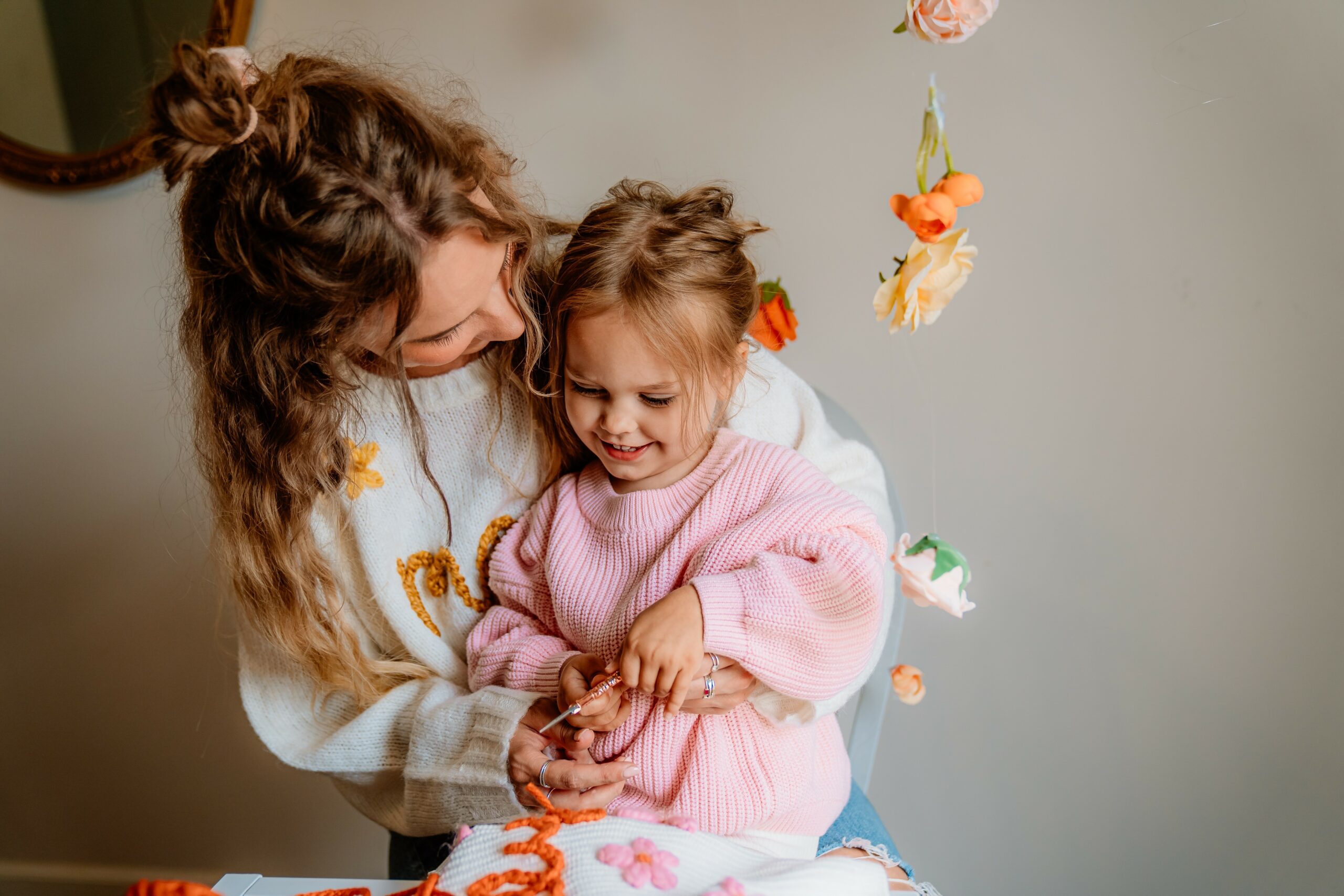 hi, I’m Alli and my daughter’s name is Lilly. I have my degree in education and minor in art and after I graduated I became a teacher. I loved teaching and although challenging in many ways, it was very rewarding. I loved helping children learn and grow and giving them tools to become their best selves. As I was teaching I always had an Etsy shop for different items and things sold here and there but nothing substantial in the slightest. When I had my daughter I KNEW I wanted to be home with her so I wracked my brain for how I could make that happen. I started to take my Etsy more seriously and come up with new ideas. At first it was mainly my friends who supported me. But as they shared my products and as I came up with new ideas I had an idea that went viral, and that was the embroidered hat. This was my first viral product. This allowed people to see my shop and opened up new doors. I then introduced the embroidered name sweater and that went more viral than I could possibly imagine or dream of. Everyone would soon be wanting one. So many that I couldn’t keep up with and each drop my sweaters would sell out in seconds! I couldn’t believe it 😭 fastforward to today and we have expanded our shop substantially. We have our own knitwear line, we come out with new products every month and we have inspired so many people to start embroidering! But the best part in all of this is that your support has allowed me to stay home with my daughter. My daughter Lilly is my inspiration and she drives me to always grow and be better. We will continue to grow and continue to spread the beautiful art of embroidery. We truly believe that each sweater is a piece of artwork, wearable art as I like to call it 🥰 designed and embroidered with so much love.