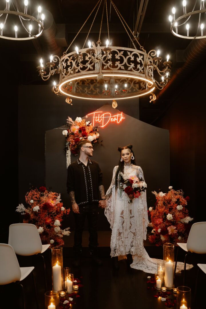 Then there’s ‘Til Death Chapel, my alternative wedding venue in Winter Park, Florida. It’s a gothic, moody space for couples who want an unforgettable vibe for their wedding or elopement. What’s so special about the chapel is how personal and intimate the ceremonies feel. One thing I’m especially excited about is our new Walk-In Wedding Days, which happen once a month. Couples can show up with their marriage license, and we’ll take care of the rest—officiant, photos, and a space full of character. It’s perfect for couples who want a simple but unforgettable way to tie the knot.