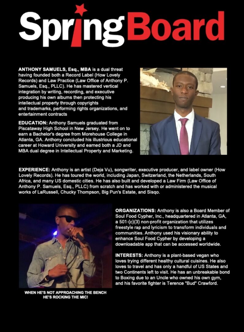 Ever since I could remember I have been in love with Hip-Hop. It seems as though my whole life has been attempting to find ways to become a full-time musician. There has been so many twists and turns on the journey. Brown Sugar has always been one of my favorite movies based in the culture of Hip-Hop which would become my careers’ muse. I was sitting in the car with one of my friends in the projects in New Jersey and told him that I was going to combine Taye Diggs and Mos Def into one person; the business and the musician. I was accepted into Howard Law School with a 21-hour 7 days-a-week plan to build a music career and become an Attorney. My mother would always say love no matter this situation; made it to a destination safely, love; received an unexpected blessing, love; a roof over your head, love. So I decided to name my company How Lovely Records. I was able to build my name in Washington, DC and gained many touring opportunities while attempting to pass the bar exam. As a current Attorney and musician, I work with the same clients that I work with ha! The same musicians that I collaborate with on music end up becoming my client as an Attorney whereby I administer their copyrights, trademarks, and the like.