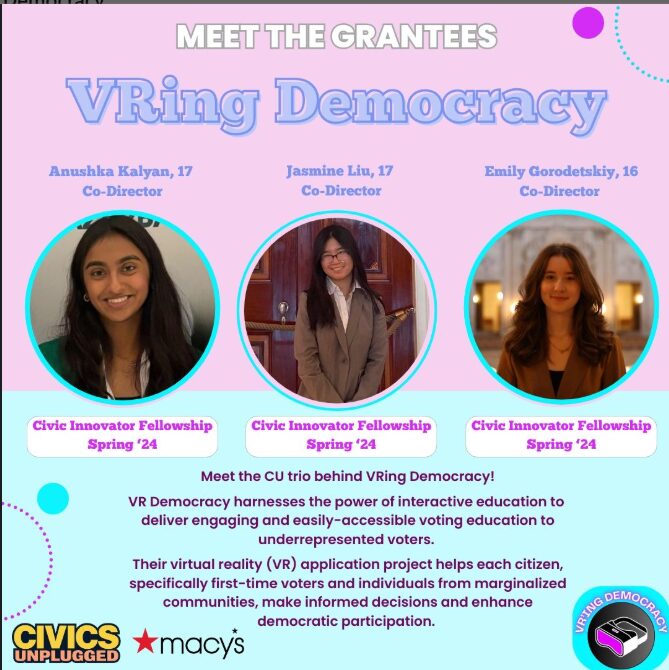 An exciting update about our organization is that we have recently hired our new group of interns. We are very excited to be able to grow our team. As of right now, we are wrapping up our school work. But once summer comes around, we will be able to ensure that our hubs are running to their full capacity. We’re changing how civic education is delivered and building lasting confidence in the democratic process.