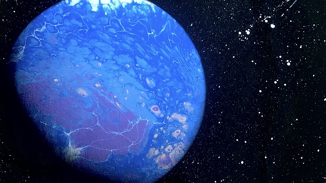 I’m an artist who focuses on outer space. I create one-of-a-kind small batch art that is multi-medium based. That means I use different materials and techniques to create one piece. I read somewhere that being an artist is often good for your brain. To paraphrase it, making art makes you piece together different thoughts and solve problems in order to create one single idea. That really stuck with me. Being a multi-medium artist, I’m constantly piecing together my art as if I’m adding puzzle pieces together and getting the perfect combination right. I plan to have my first art show soon. Hopefully, I can collab with a coffee shop or clothing brand to pop up and show my art.