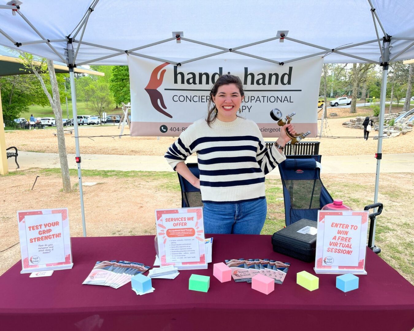 I really love connecting with and working with people in the community – it’s one of the things I love most about being a mobile practice. I’ve done classes like teaching ergonomic principles to mom groups and doing grip strength testing and education at community events. I also love creating educational digital content for the general public and fellow therapists. I’m always looking for fellow professionals or groups that would be interested in collaborating – whether it’s hosting an event together or inviting me to come to an event to share my knowledge about all things upper extremity therapy. Feel free to reach out and let’s chat!