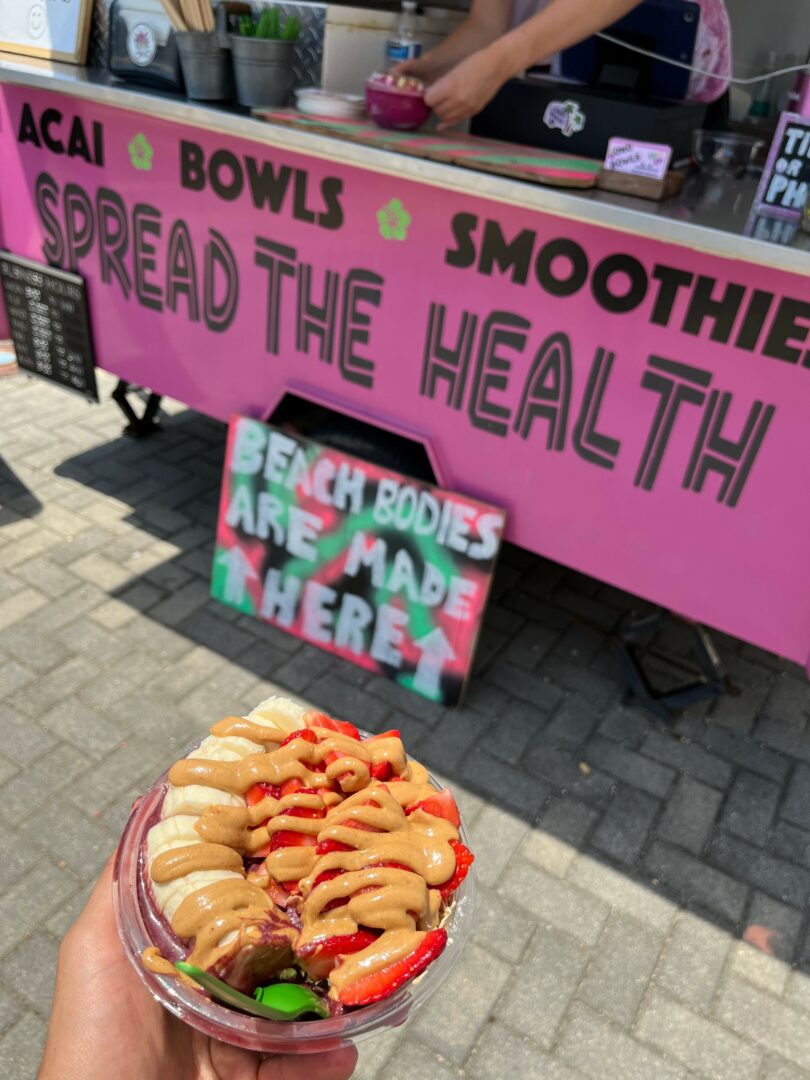 But we didn’t stop there. We expanded into catering, serving everything from birthday parties to the Atlanta Falcons and even backstage at PNC Bank Arts Center. What sets us apart? We never cut corners. While food trucks are often associated with fried, indulgent eats, we saw an opportunity to bring high-quality, nutrient-packed food to festivals, beaches, and beyond. Why grab a pizza slice or an ice cream cone when you could have a vibrant, refreshing acai bowl that looks great, tastes amazing, and makes you feel even better?