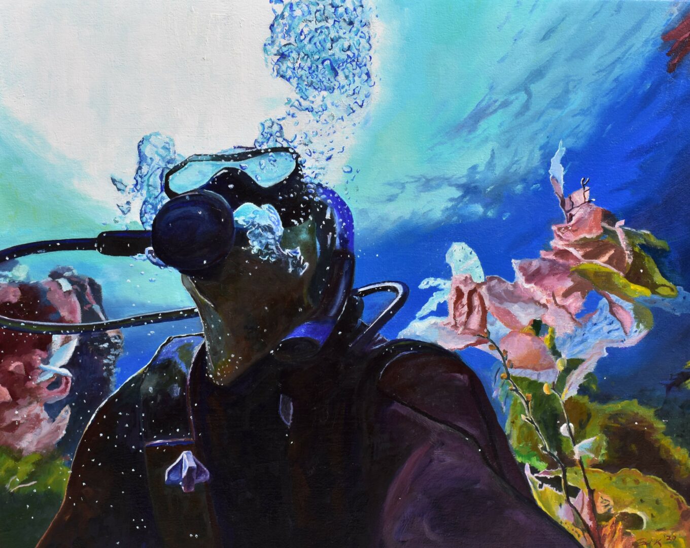 I just got back from Zanzibar in Africa on a kitesurfing/scuba diving trip actually, and if I had a decade to live from today, I would get a boat, sail the world, and just make art and get in the ocean as much as possible. Growing up my favorite movies were the Goonies and Hook, for some reason I’ve always been drawn to the Ocean and watersports, one could say it’s my happy place. Theres something just very peaceful about it, the sights and smells, and the freedom. It makes you feel very small and puts life into perspective. I spent a few days getting my advanced diver certification there, and there is still more to learn, wreck diving is next on the list. It’s also a very good way for me to get reference photos for my paintings which I of course do. It’s important also I believe to meet new people and cultures, to get outside of your own bubble and realize how much more in the world there actually is. Not everyone lives the same life as you do, not every country has the same freedoms and rights, and everyone would be much better off to gain these perspectives.