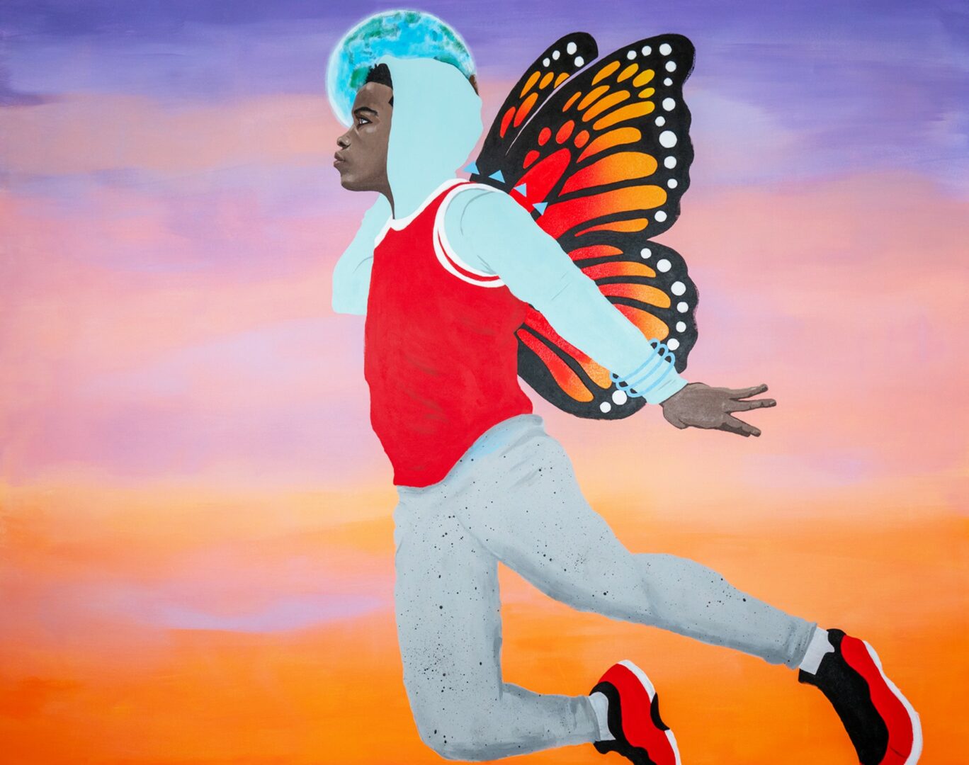 I also make sure to keep experimenting. I don’t stay locked into one surface—I paint on canvas, customize clothing, and create public art. Sometimes that means painting my characters, Marcus holding the world in his hands, or Khyah reimagined as a superhero. Letting myself play with them across different worlds keeps my work fresh and reminds me there’s no single “right” way to create.