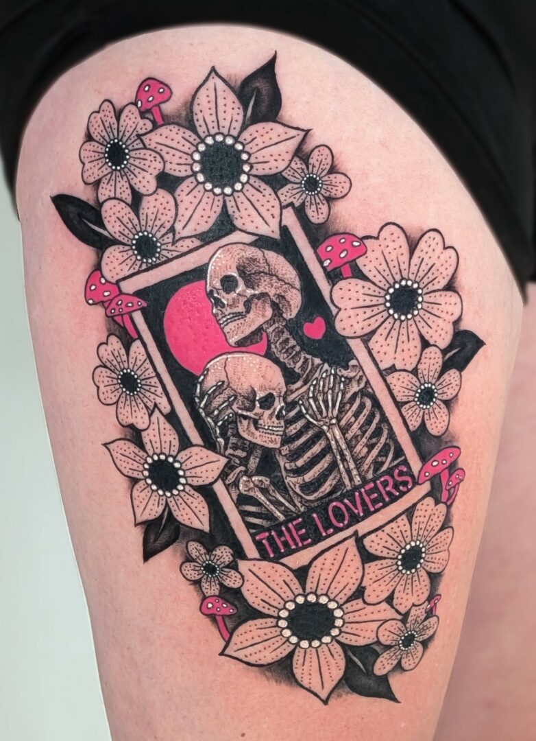 I am the Owner and Principal Artist of Bone and Lily, a private tattoo studio in Knoxville, Tennessee. While my portfolio features a lot of realism, portraits, and fine line work, I have a deep love for illustrative, spooky, and cottagecore themes, especially stylized, mystical lady faces. However, I consider my true professional specialties to be trauma-informed and sensory-friendly care.