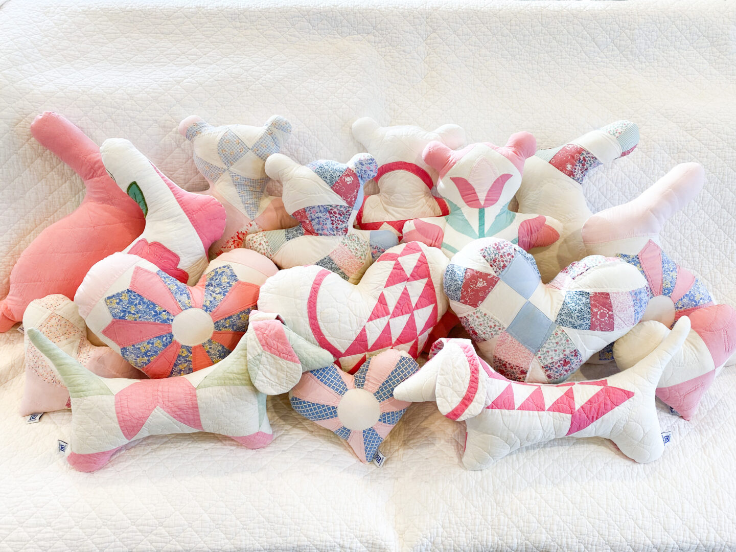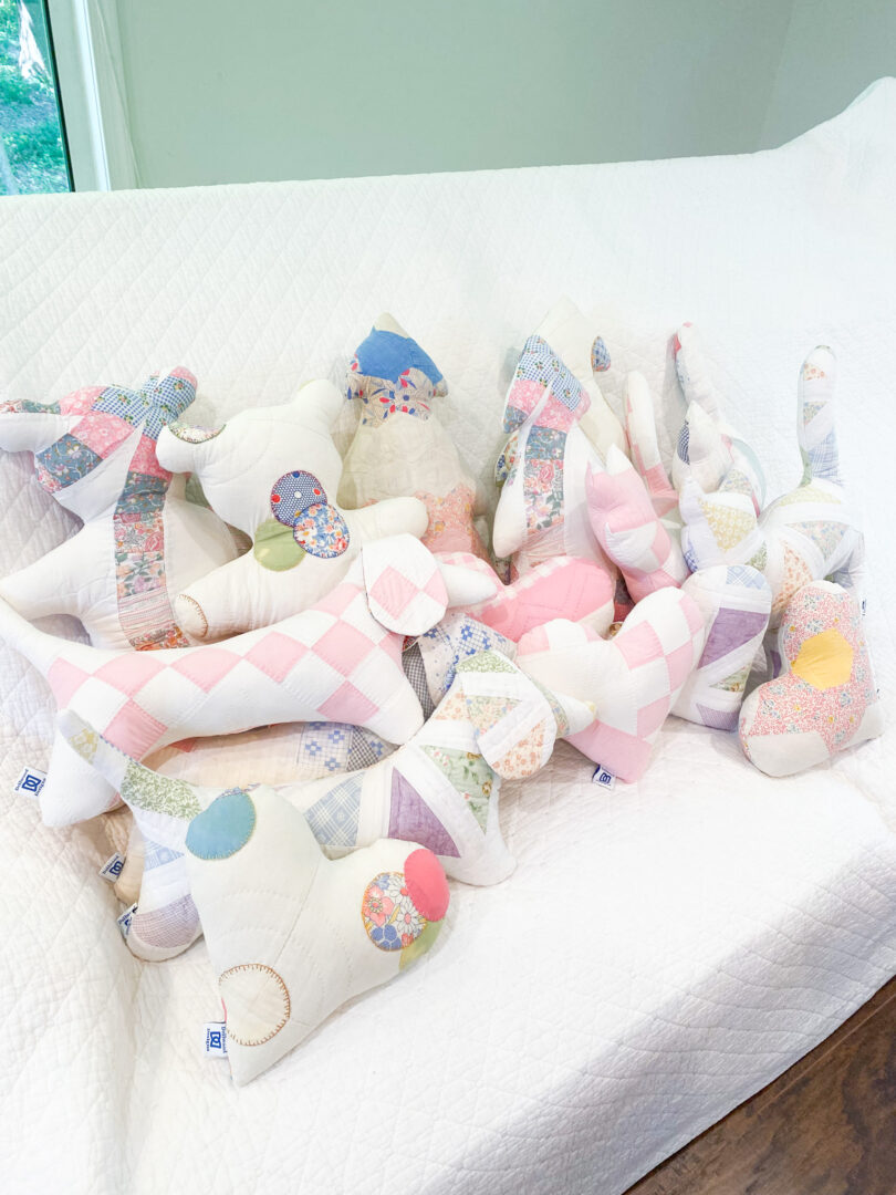 Our business is truly a blend of both of our creative passions. We have our paper goods collection and our quilt collection—each piece either handmade or hand-designed by us. The quilt collection, in particular, holds a special place in our hearts. We work with antique and vintage quilts that might otherwise be discarded. Each of these quilts was crafted with incredible care and love, and by reimagining them into new pieces, we get to preserve their history and extend their story. You can really feel the time, effort, and devotion stitched into every quilt we use.